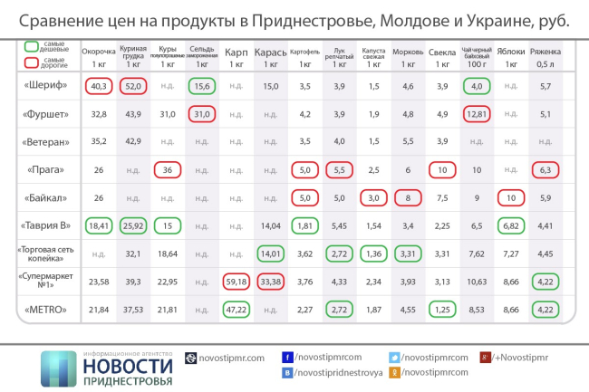 Цены в зарубежных магазинах пересчитаны в рубли ПМР по официальному курсу ПРБ на 7 июля – день, когда проводилось сравнение.