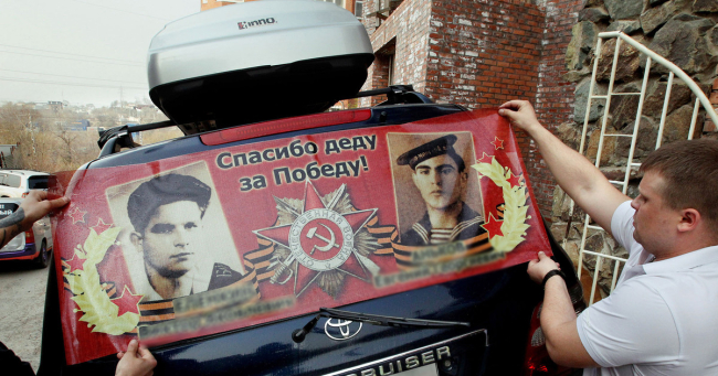 Автомобилисты 9 мая могут прикрепить на свои машины фотографии участников войны и тематические наклейки