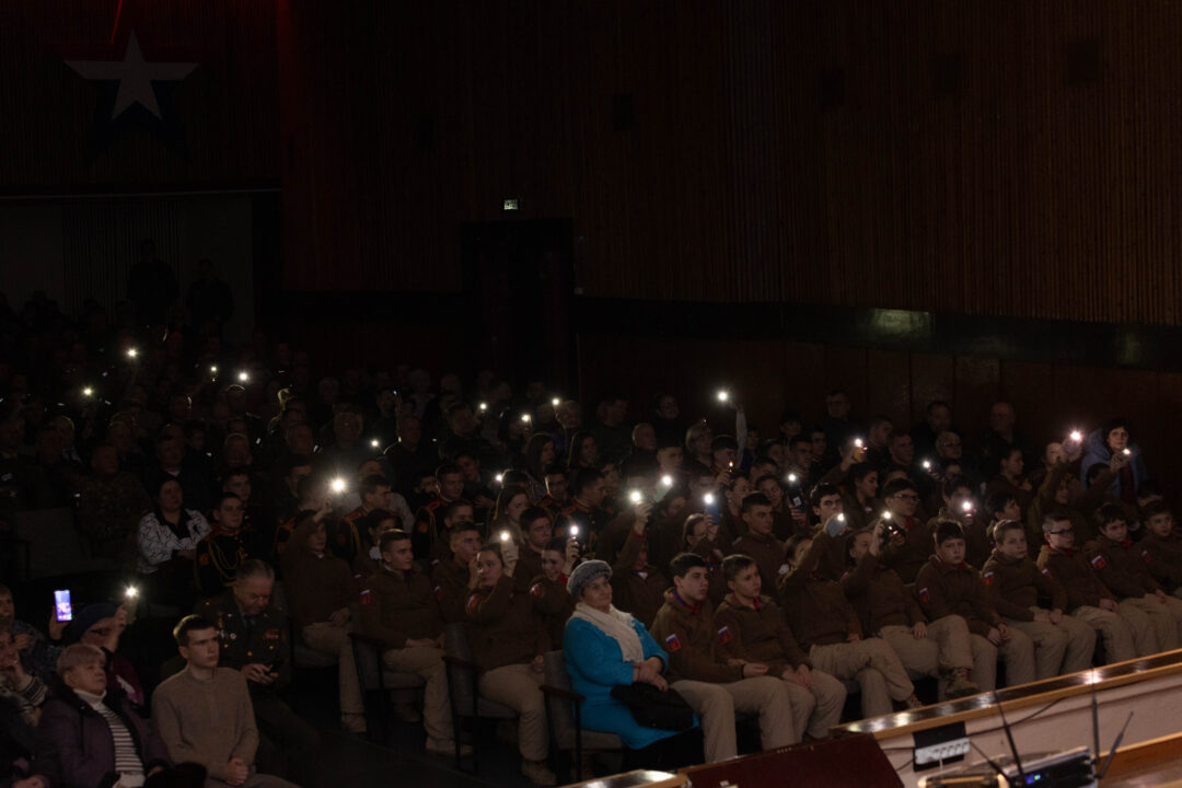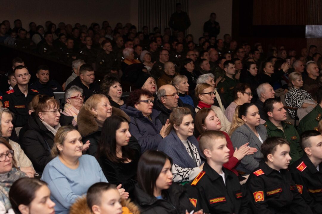 В зале собрались ветераны войны в Афганистане и члены их семей, военнослужащие, представители общественных и образовательных учреждений, суворовцы.
