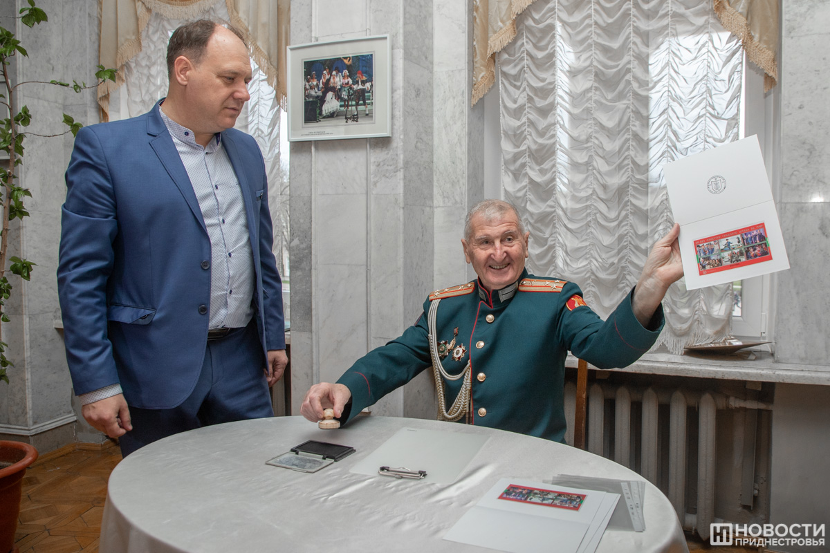 В холле Приднестровского государственного театра гостей встречал школьный джазовый оркестр, а издательство «Марка Приднестровья» специально к юбилею подготовило серию почтовых марок. В спецгашении приняли участие министр обороны генерал-лейтенант Олег Обручков и главный дирижер оркестра Виталий Войнов, сообщает пресс-служба Минобороны.