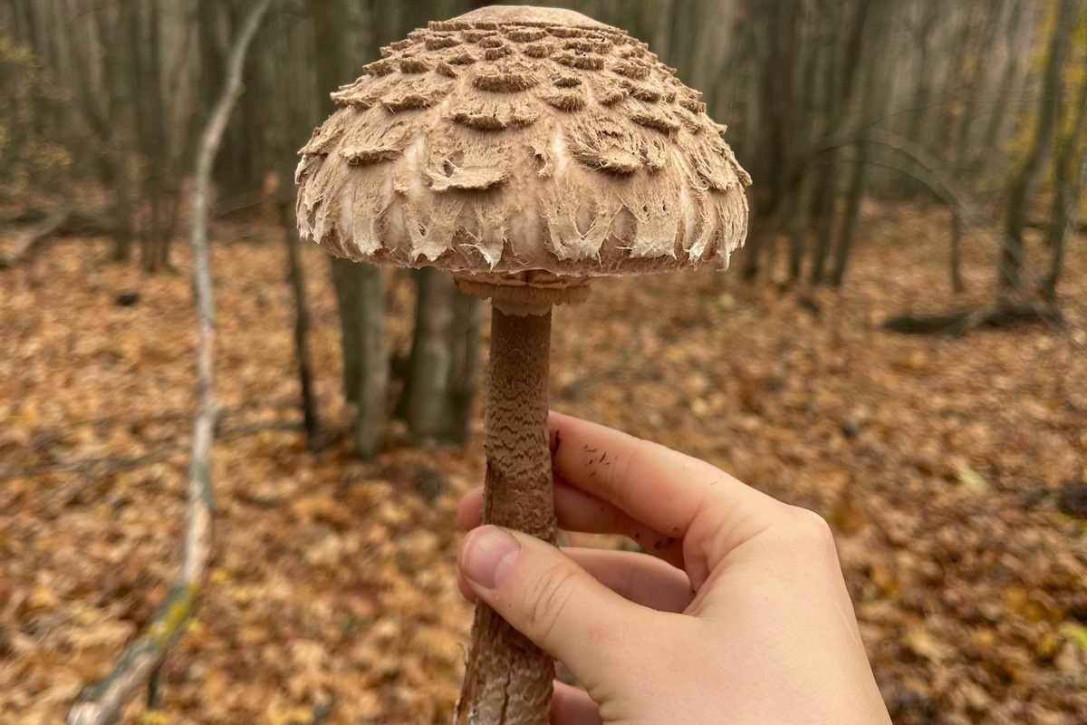 Дальше нас ожидал настоящий сюрприз. На опушке, где солнце ласково грело старый пень, выстроились в ряд вешенки. Лес знал своё дело: угощал нас щедро, но деликатно, словно проверяя, умеем ли мы благодарить. Чуть дальше раскинули свои широкие шляпы грибы-зонтики. Стройные, нарядные, некоторые размером с ладонь и больше, они стояли, действительно похожие на зонтики, расправив кружевные края.