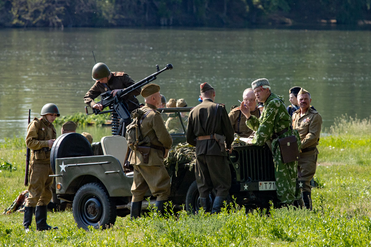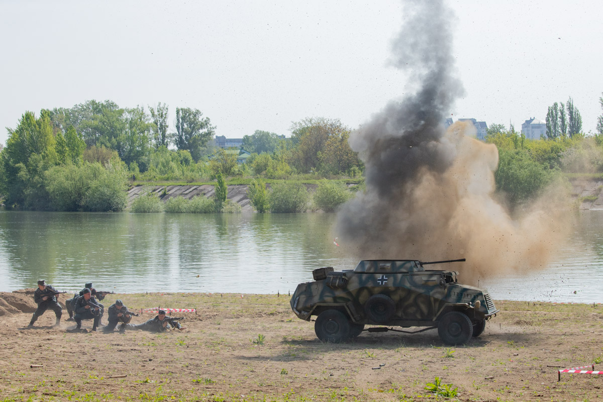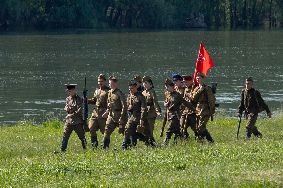 03 Май., 2019, 16:32Тирасполь, 3 мая. /Новости Приднестровья/. И снова бой. Красная армия форсирует водную преграду и идет на штурм вражеских укреплений: повсюду взрывы и грохот боевых машин, едва заметных в клубах пыли и дыма. Происходящее на поле боя, несмотря на весь эмоциональный накал, все же остается художественной постановкой: музыкальное сопровождение и голосовой экскурс дополняют картину военно-исторической реконструкции, которая проводится в приднестровской столице уже третий год подряд.