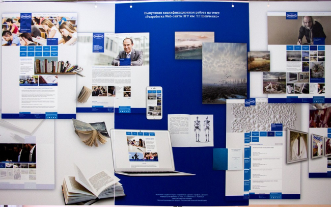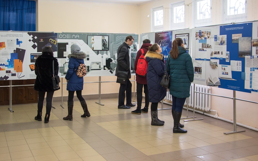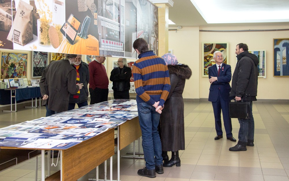 В экспозиции представлены работы преподавателей филиала: научные исследования по вышивке северных районов Приднестровья, гобелены, дизайнерские проекты: оформление книг, буклетов и брошюр, фирменный стиль сайта (веб-дизайн) и полиграфия.
