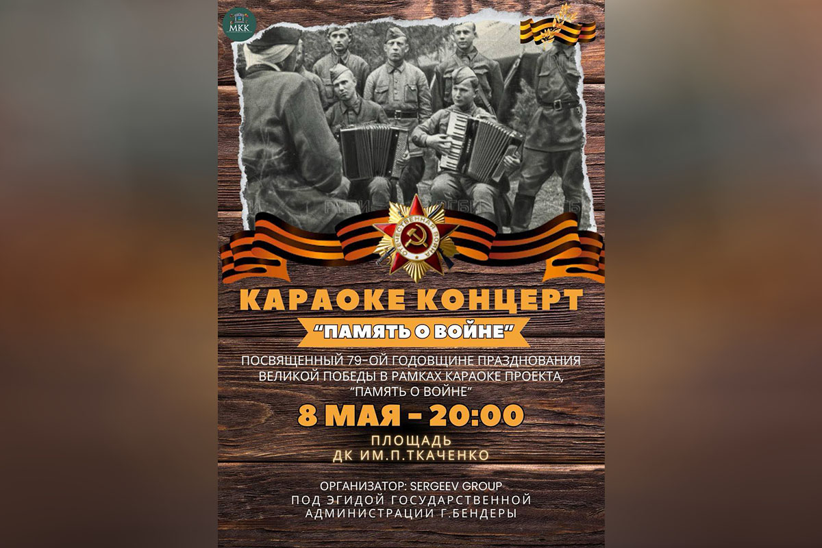 «Память о войне» - 8 мая в Бендерах состоится караоке-концерт