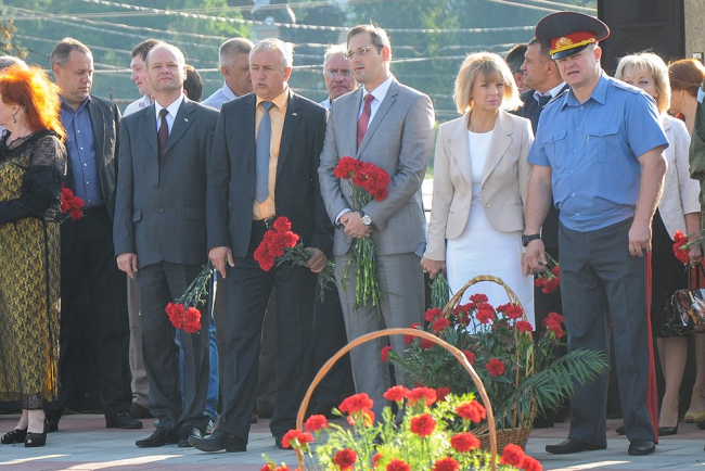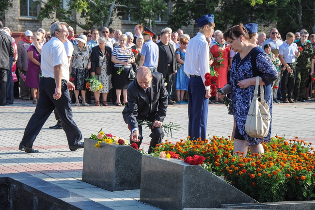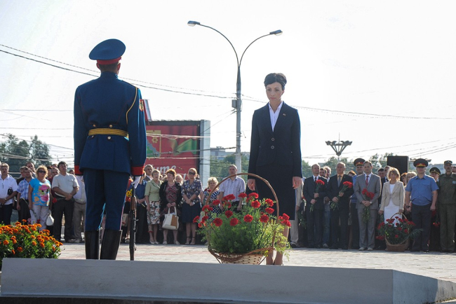 Память погибших участники митинга почтили Минутой молчания. К могилам защитников Отечества, захороненных на Мемориале Славы, легли живые цветы.