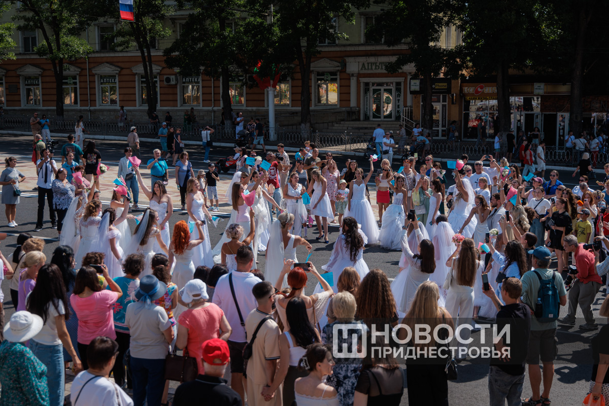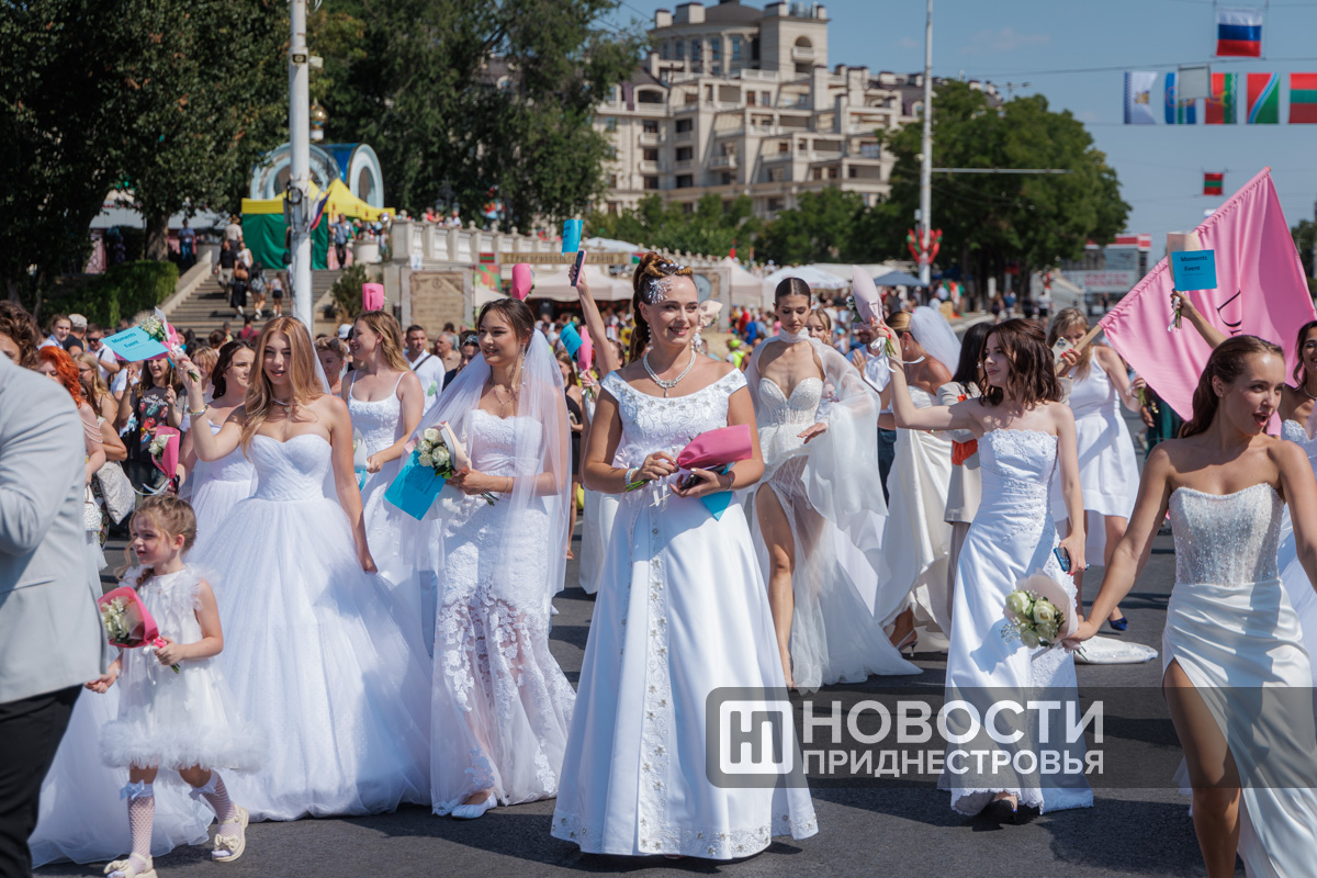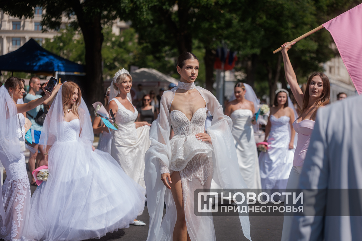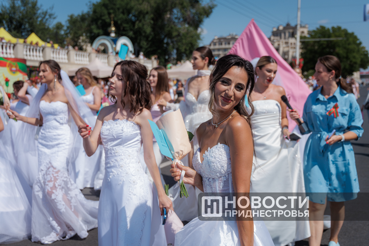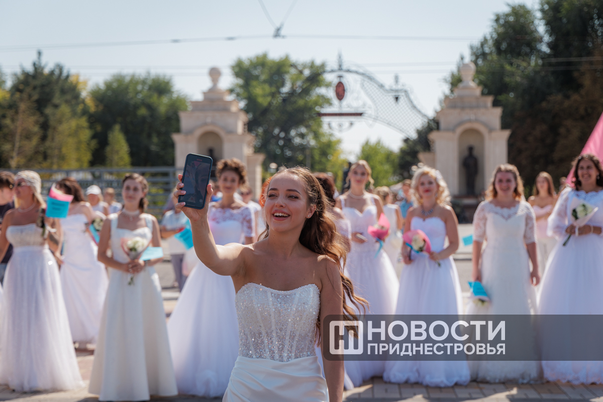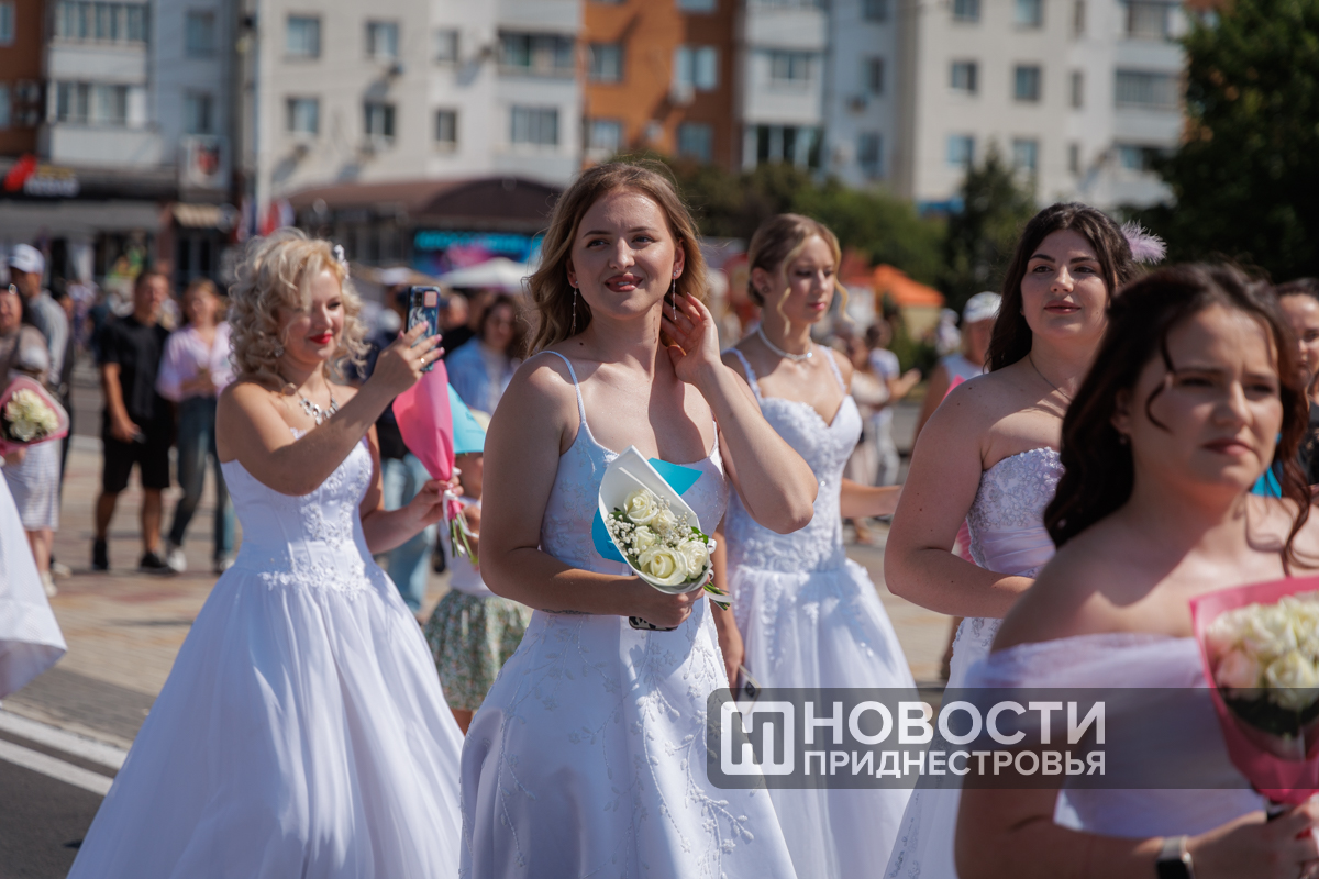Тирасполь, 2 сентября. /Новости Приднестровья/. Белые платья, сияющие диадемы и улыбки – в День Республики 30 приднестровских девушек собрались на параде невест в самом центре Тирасполя. Некоторые из них уже испытывали волнительные ощущения свадебного торжества в прошлом, а кто-то сегодня в первый раз примерил свадебное платье – для них парад стал визуализацией будущей свадьбы.