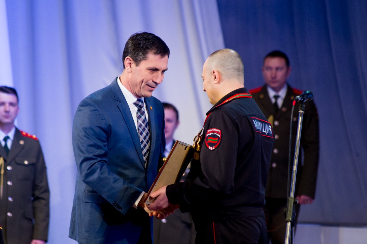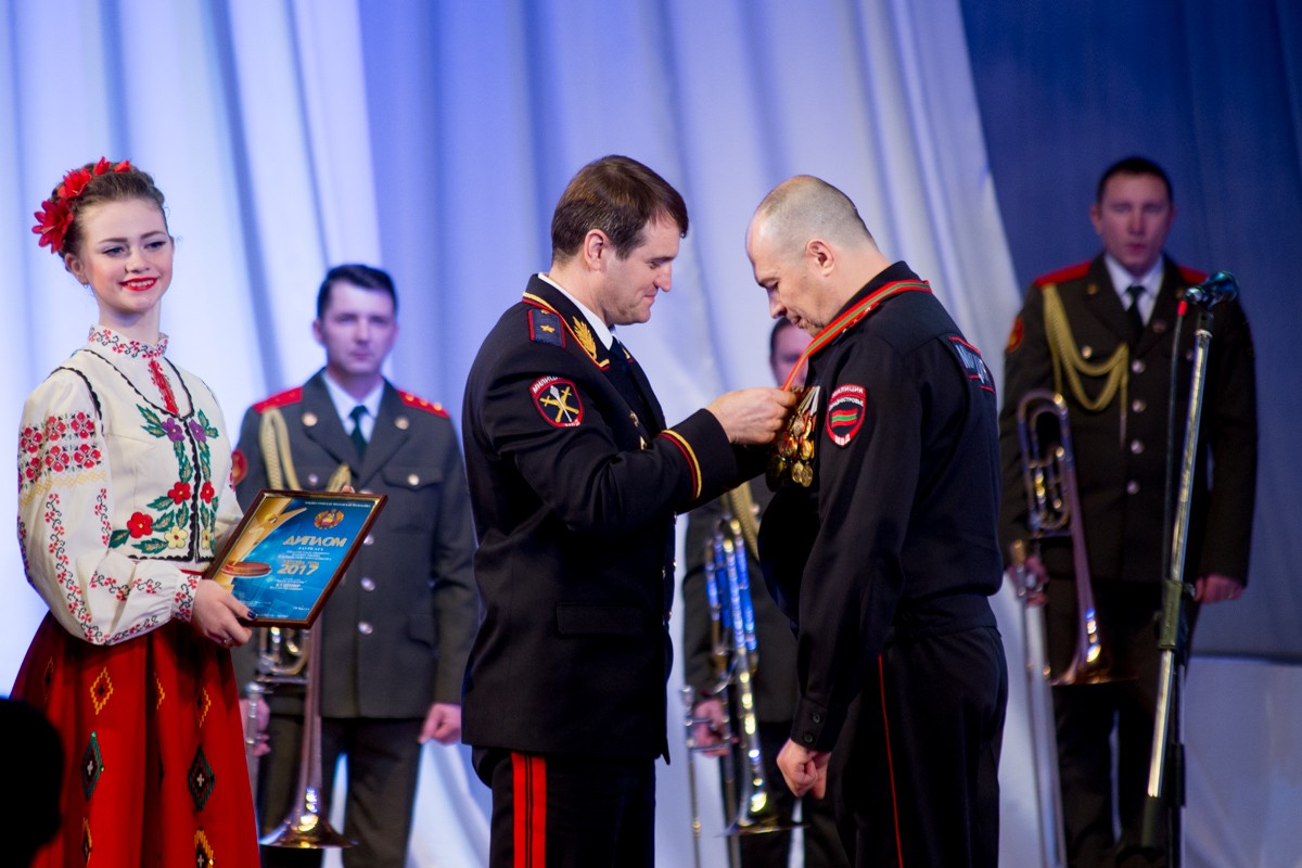Министр МВД ПМР Руслан Мова и глава госадминистрации Бендер поздравили лауреата с победой и вручили ему высокие награды.