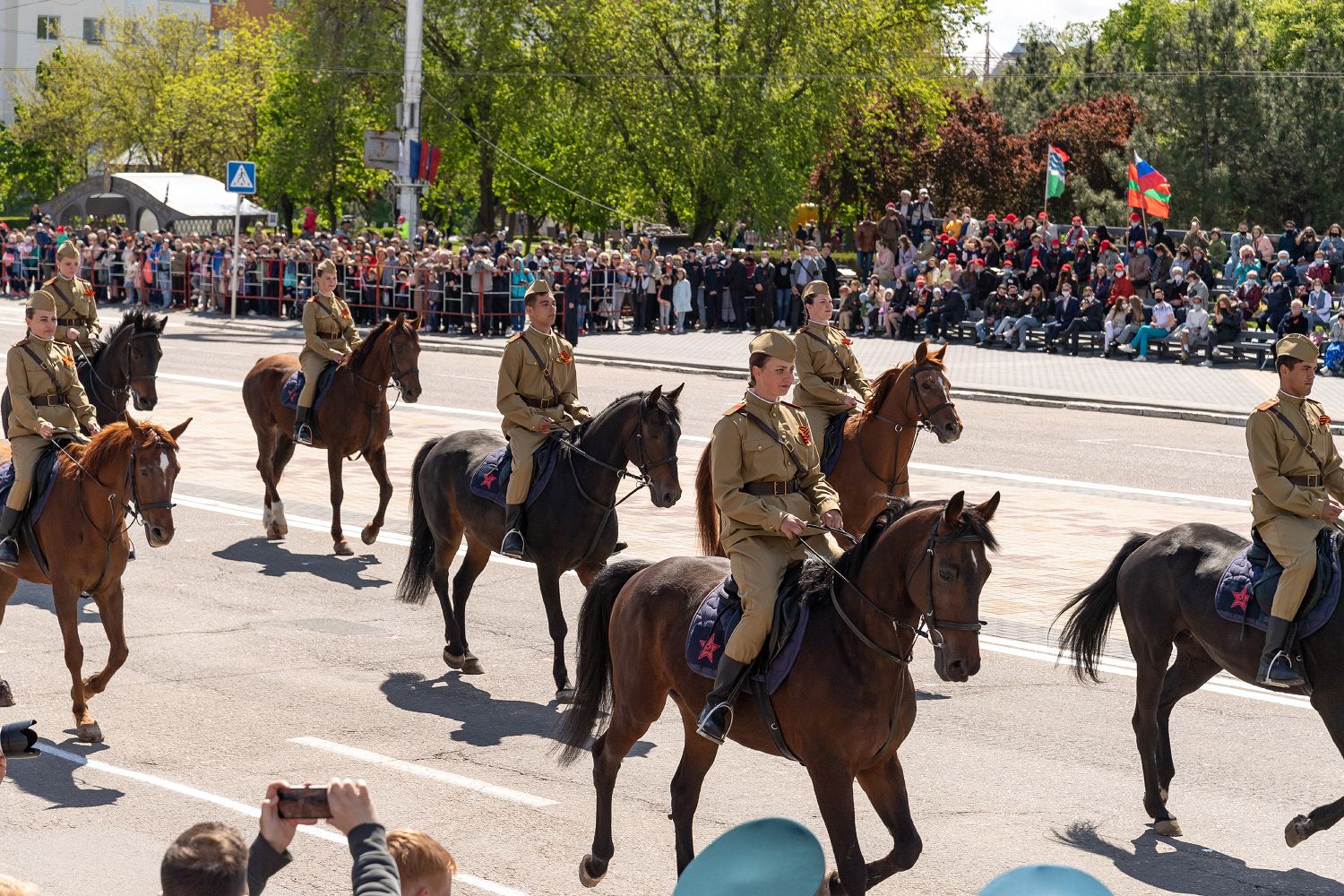 Парад Победы продолжило дефиле конного расчёта МВД ПМР