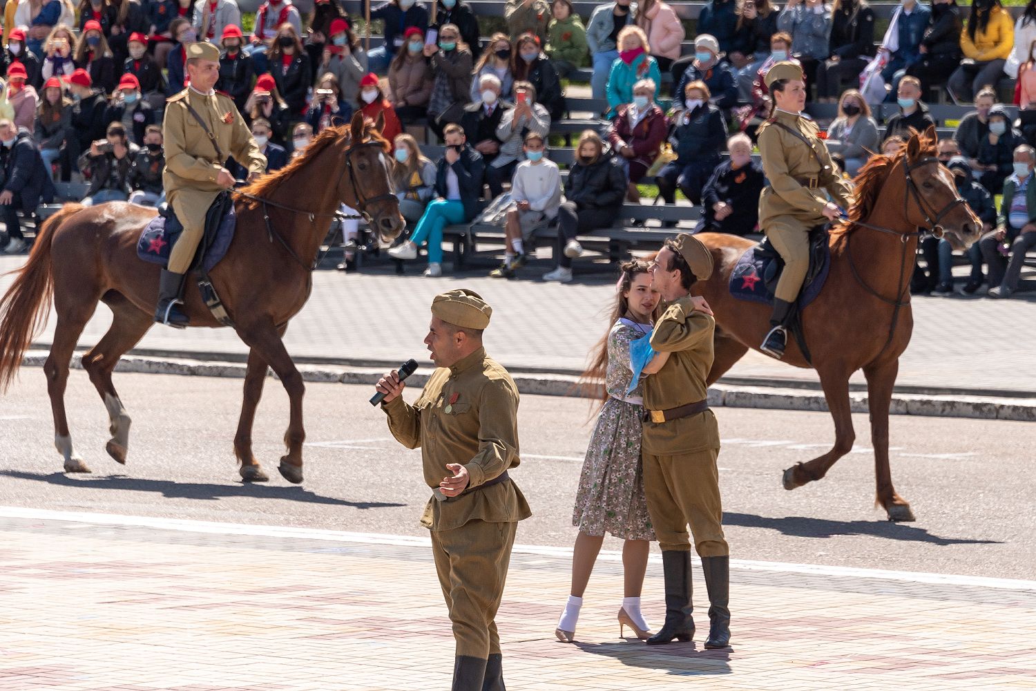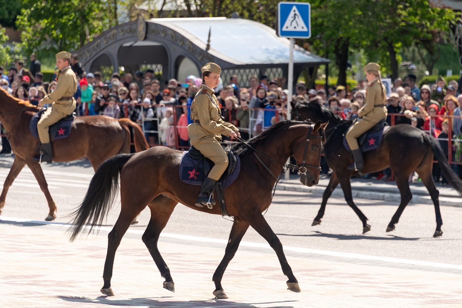 Наездницы были одеты в форму времен Великой Отечественной войны
