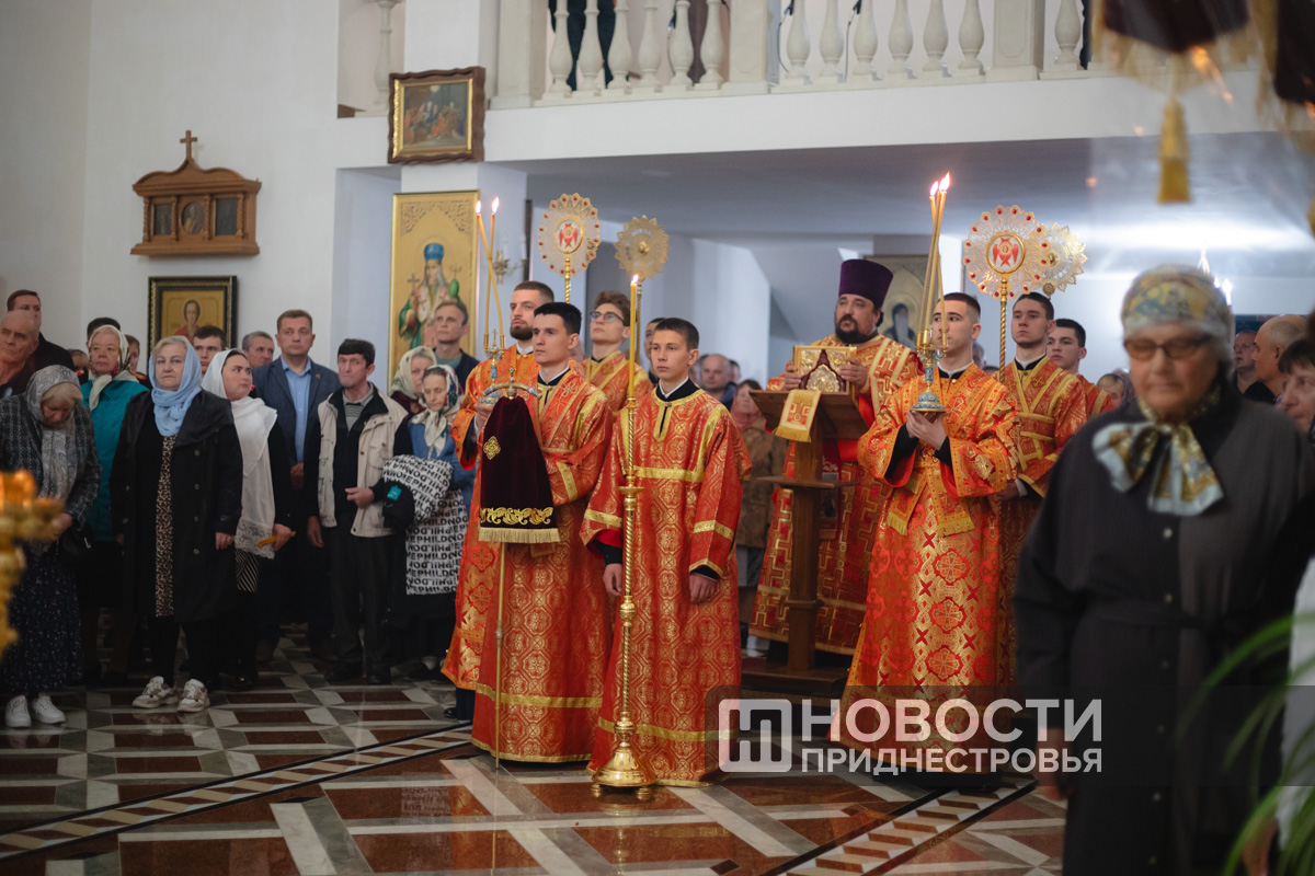 Во время божественной литургии Архиепископ Тираспольский и Дубоссарский Савва приветствовал прихожан сакральным «Христос воскресе!», услышав в ответ «Воистину воскресе!». Продолжила торжественную службу церемония освящения пасхального хлеба. В завершение богослужения Правящий Архиерей обратился к собравшимся с архипастырским наставлением и поздравил паству со Светлым праздником Пасхи.