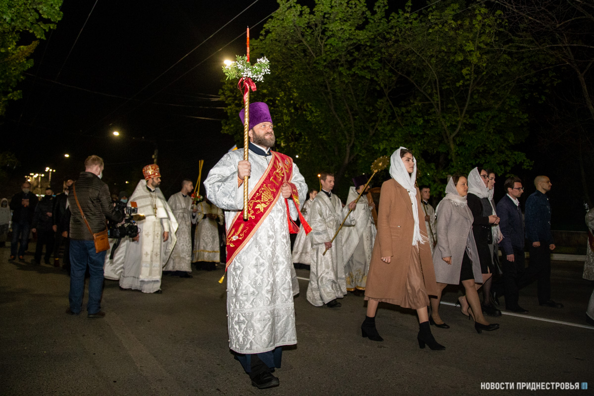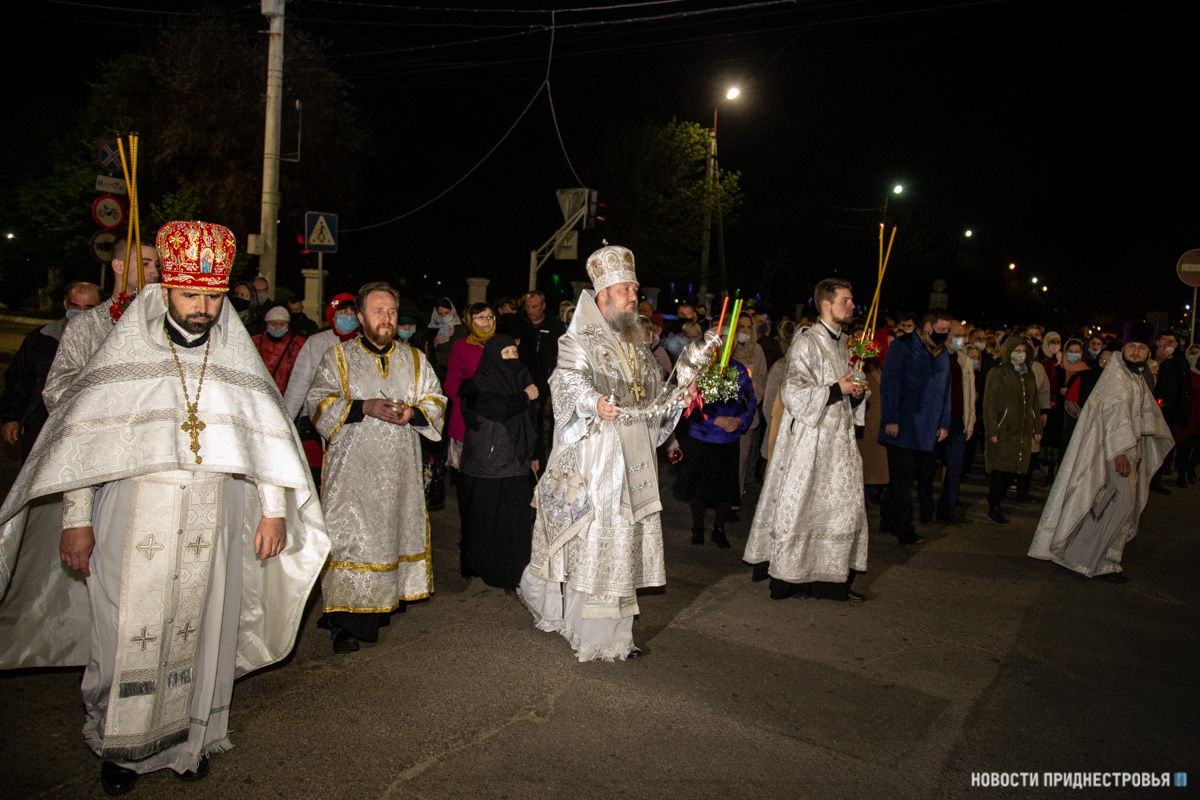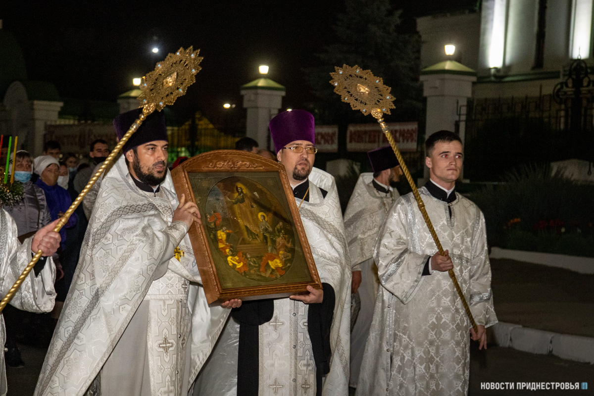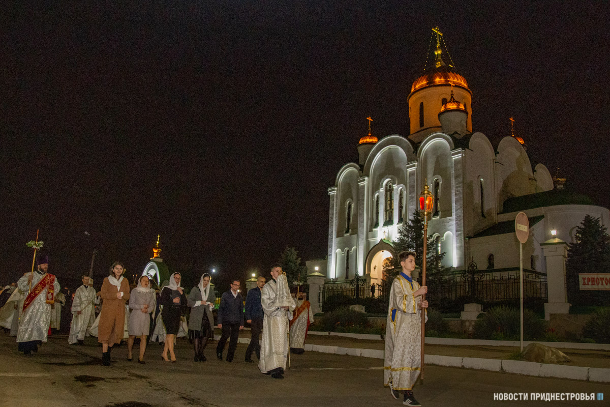 Под пение стихиры «Воскресение Твое, Христе Спасе» вокруг соборного храма был совершен крестный ход, который возглавил Архиепископ Савва, сообщается на сайте Тираспольско-Дубоссарской епархии.