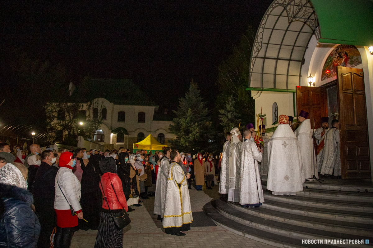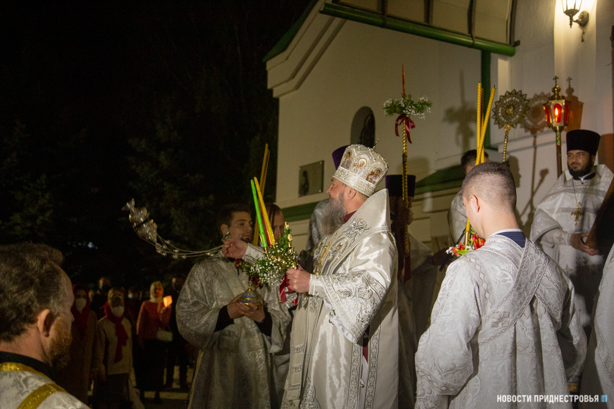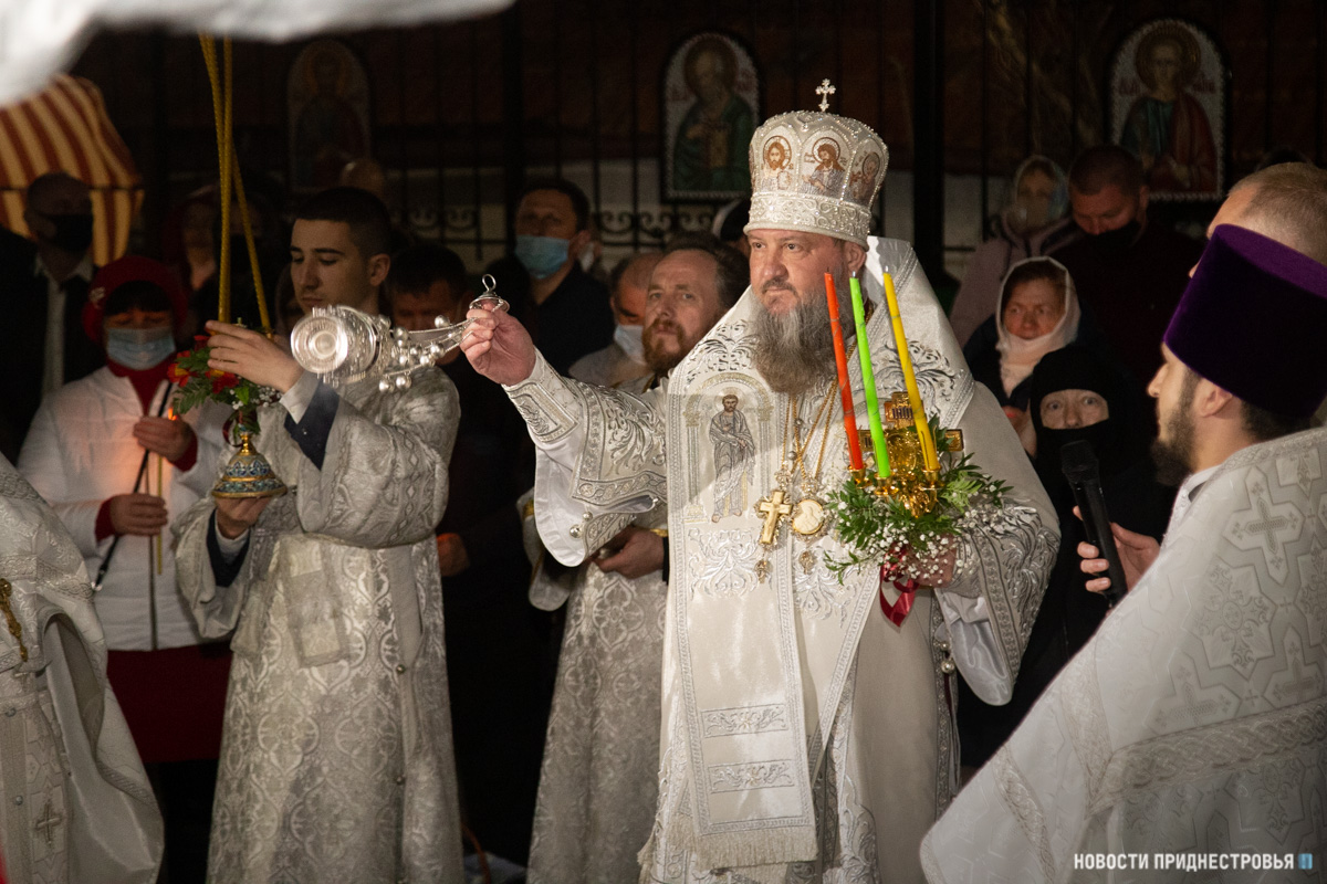 02 Май., 2021, 11:00Тирасполь, 2 мая. /Новости Приднестровья/. В ночь с 1 на 2 мая в кафедральном Христо-Рождественском соборе Тирасполя Архиепископ Тираспольский и Дубоссарский Савва совершил череду Пасхальных богослужений – полунощницу, крестный ход, Пасхальную заутреню и Божественную литургию святителя Иоанна Златоуста.