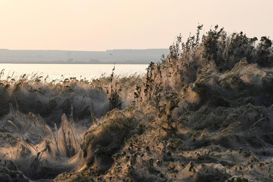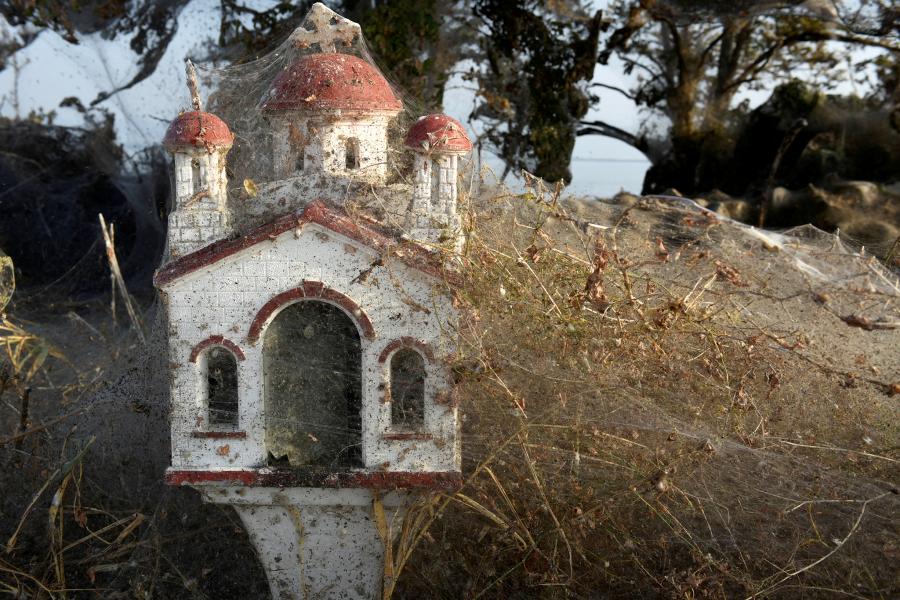 Берега греческого озера Вистонида оказались окутаны паутиной, сообщает iLoveGreece.