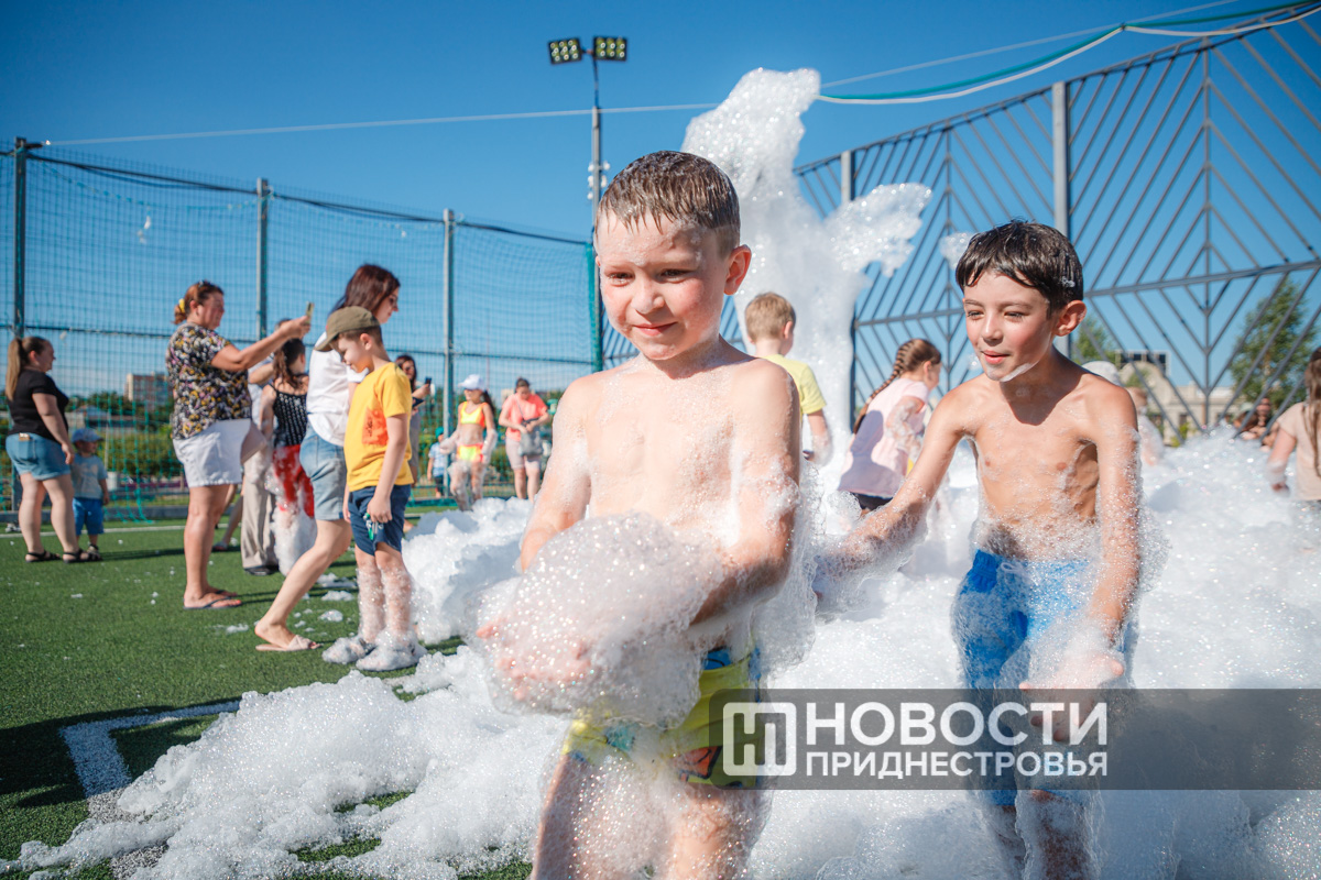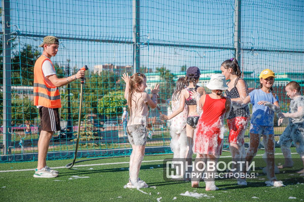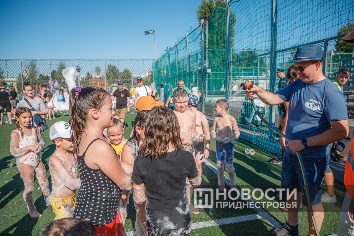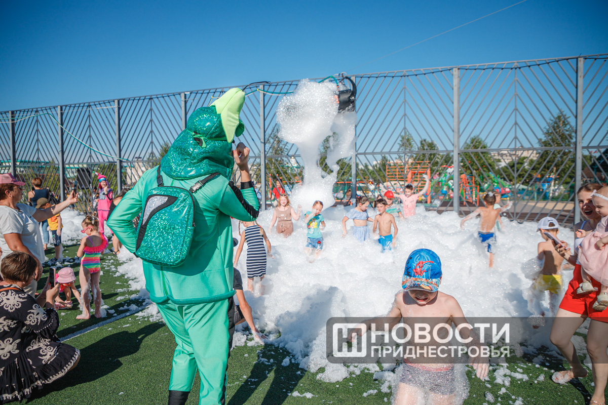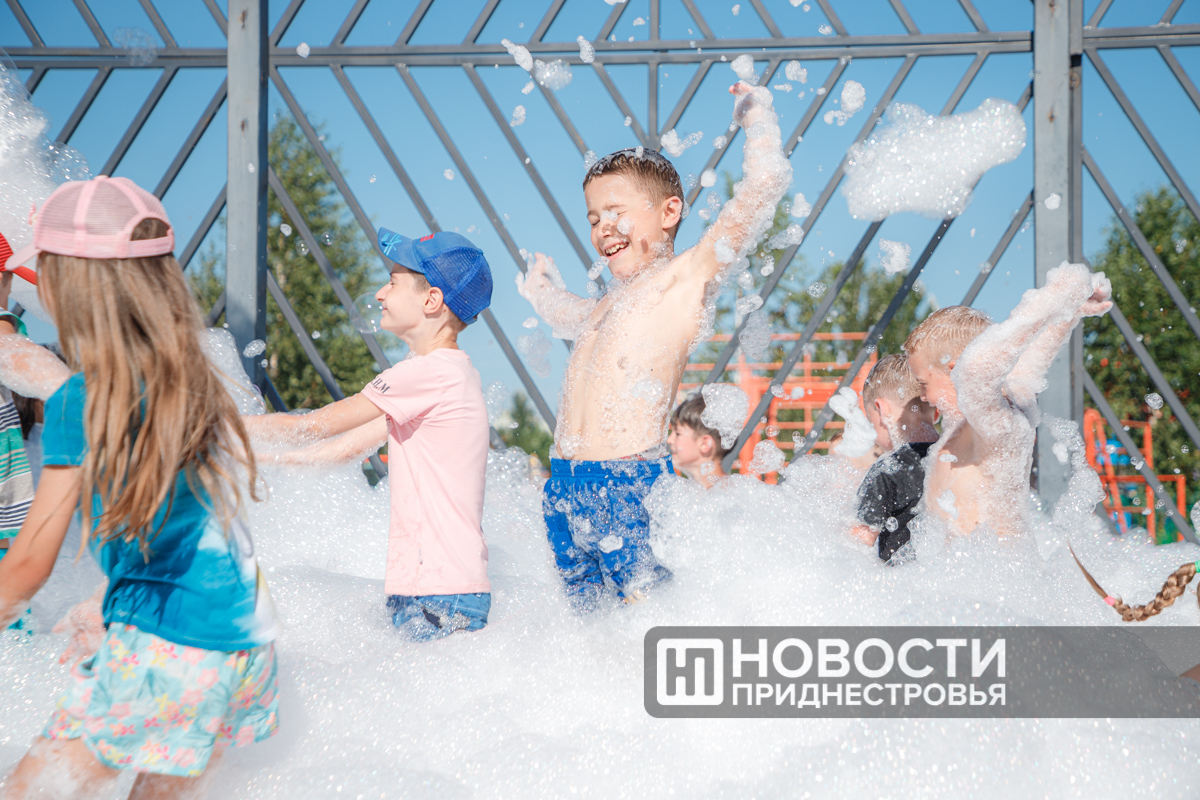 Тирасполь, 28 июля. /Новости Приднестровья/. Вечер воскресенья в Тирасполе прошёл весело. Сегодня на спортивной площадке Екатерининского парка для детей и взрослых организовали пенную вечеринку.