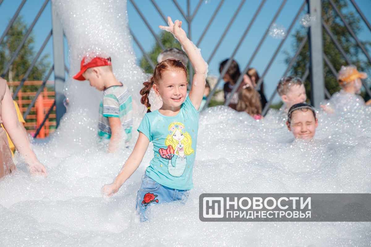 Пенная феерия с музыкой и танцами собрала детвору в центре Тирасполя
