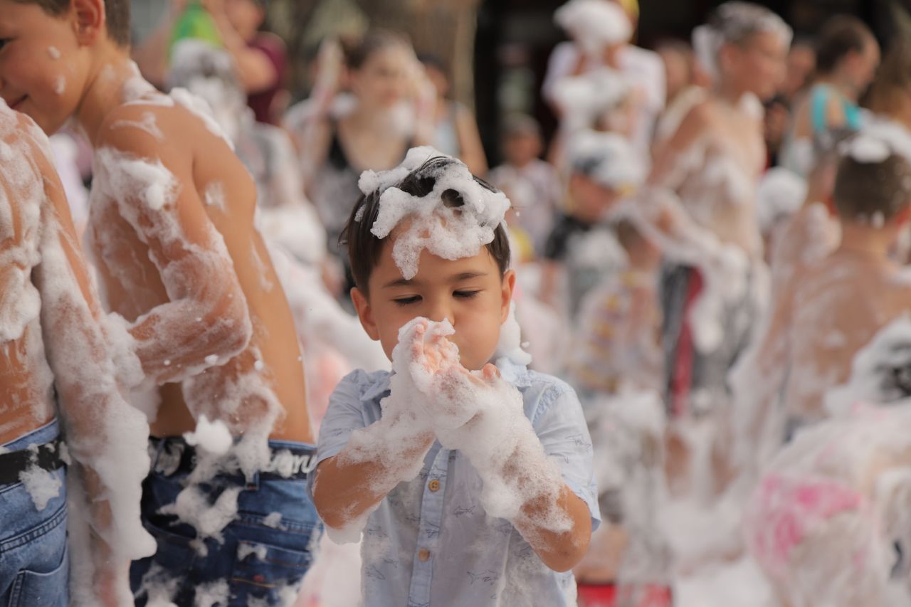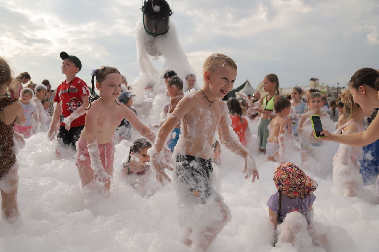 На территории «Чудо-града» студия детского досуга «Мультипраздник» устроила «Пенное шоу». Особо пришлось это развлечение по душе юным жителям и гостям столицы: мыльная пена была повсюду, вызывая неподдельный восторг у детворы.