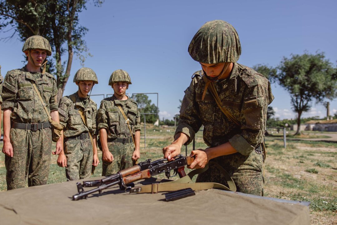 Сегодня новобранцы упражнялись в стрельбе из автомата Калашникова. Предварительно на учебных местах ещё раз повторили меры безопасности и условия выполнения упражнения, практиковались в неполной разборке и сборке стрелкового оружия, приведении автомата к нормальному бою, выполнили нормативы по инженерной и медицинской подготовке.