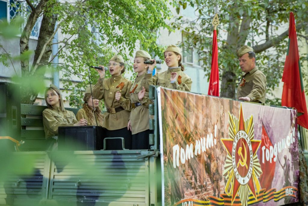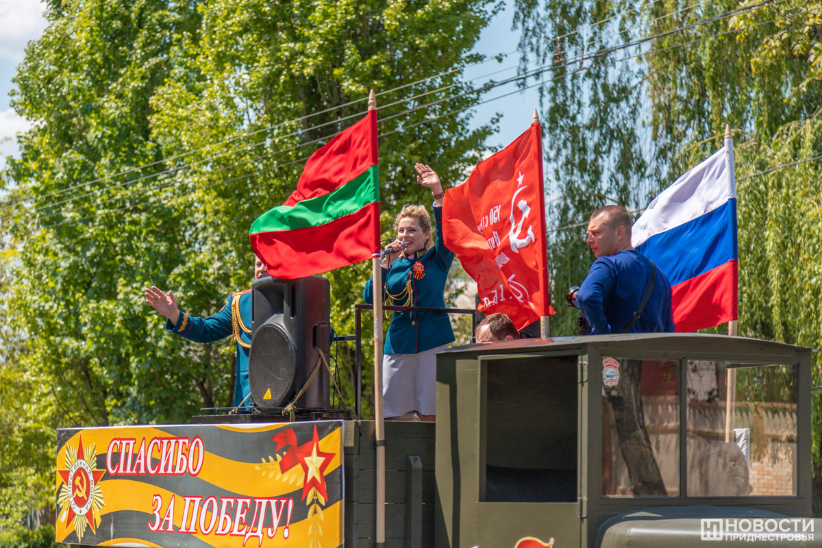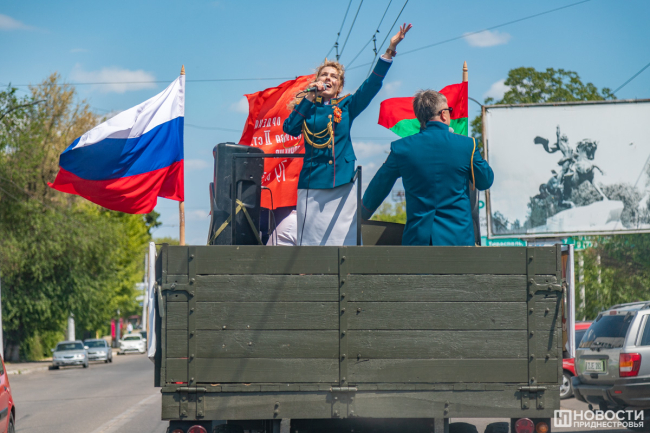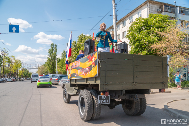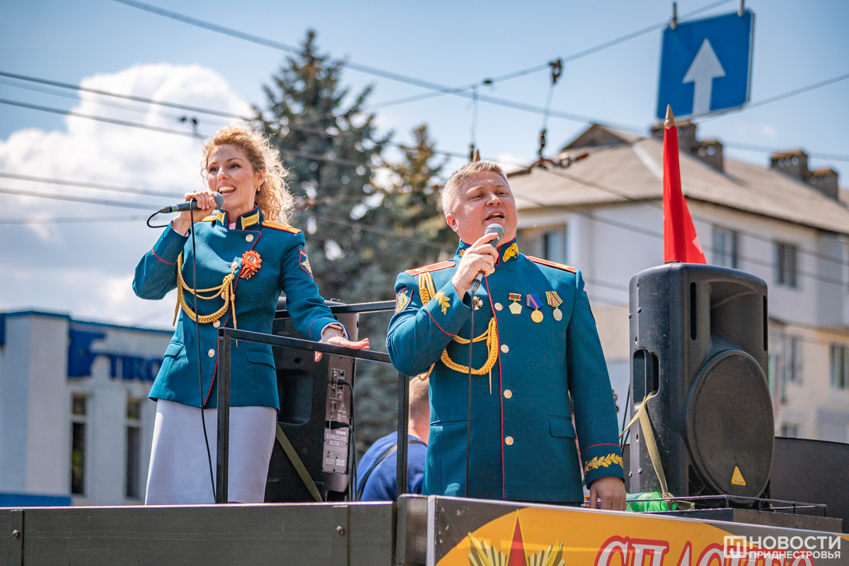 Сегодня же с этим праздником артисты Главного штаба Вооруженных сил Министерства обороны ПМР поздравили жителей столицы. Выездные творческие бригады курсировали по Тирасполю, исполняя известные произведения, посвящённые Великой Отечественной войне. В разных микрорайонах города артисты давали концерты на импровизированной сцене.