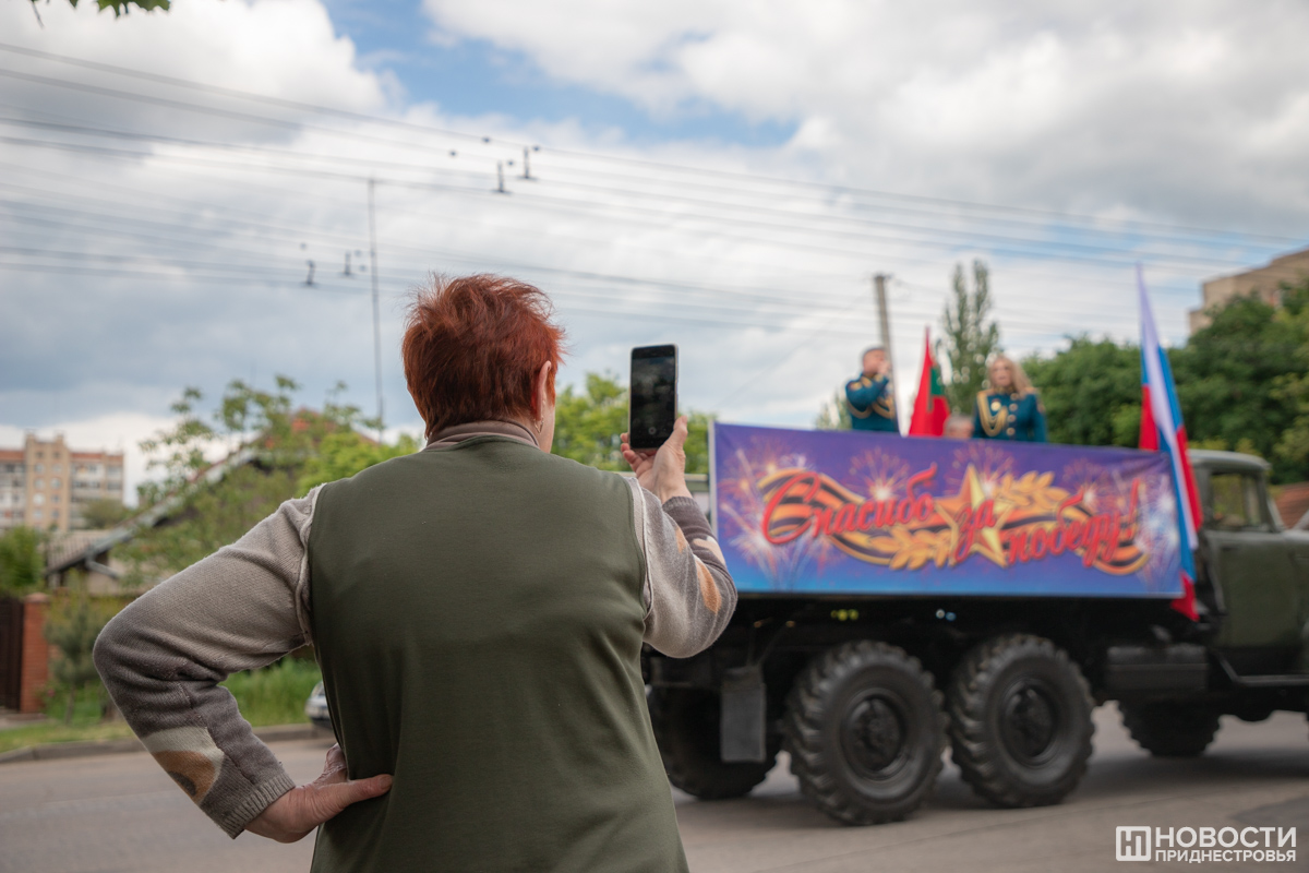 Тирасполь, 9 мая. /Новости Приднестровья/. Четвёртый год подряд на 9 Мая в Тирасполе выступают передвижные творческие бригады. Солисты оркестра главного штаба Вооружённых сил ПМР поздравляют тираспольчан с Днём Великой Победы и исполняют известные многим поколениям композиции военных и послевоенных лет: «День Победы», «Смуглянка», «Катюша» и другие. Артисты дают концерты на импровизированной сцене в разных микрорайонах города, создавая атмосферу победной весны 1945 года.