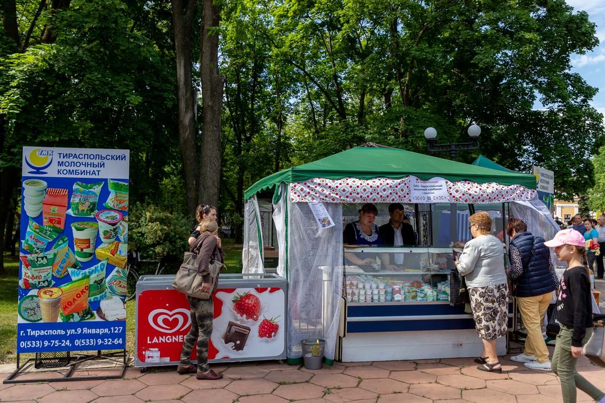Ознакомиться с продукцией приднестровских товаропроизводителей, приобрести понравившиеся изделия и товары, послушать концертную программу, подготовленную творческими коллективами столицы, и просто отдохнуть на свежем воздухе в тени деревьев сегодня пришли сотни горожан и гостей столицы.