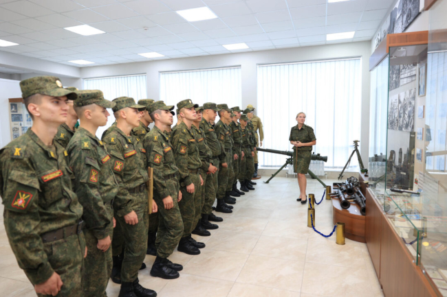 Курсанты ознакомились с уникальными экспонатами музея: фотографиями, историческими документами, личными вещами и оружием бойцов. Особое внимание привлёк мемориальный объект «Кольцо памяти», на котором увековечены имена 470 погибших во время вооружённого конфликта.