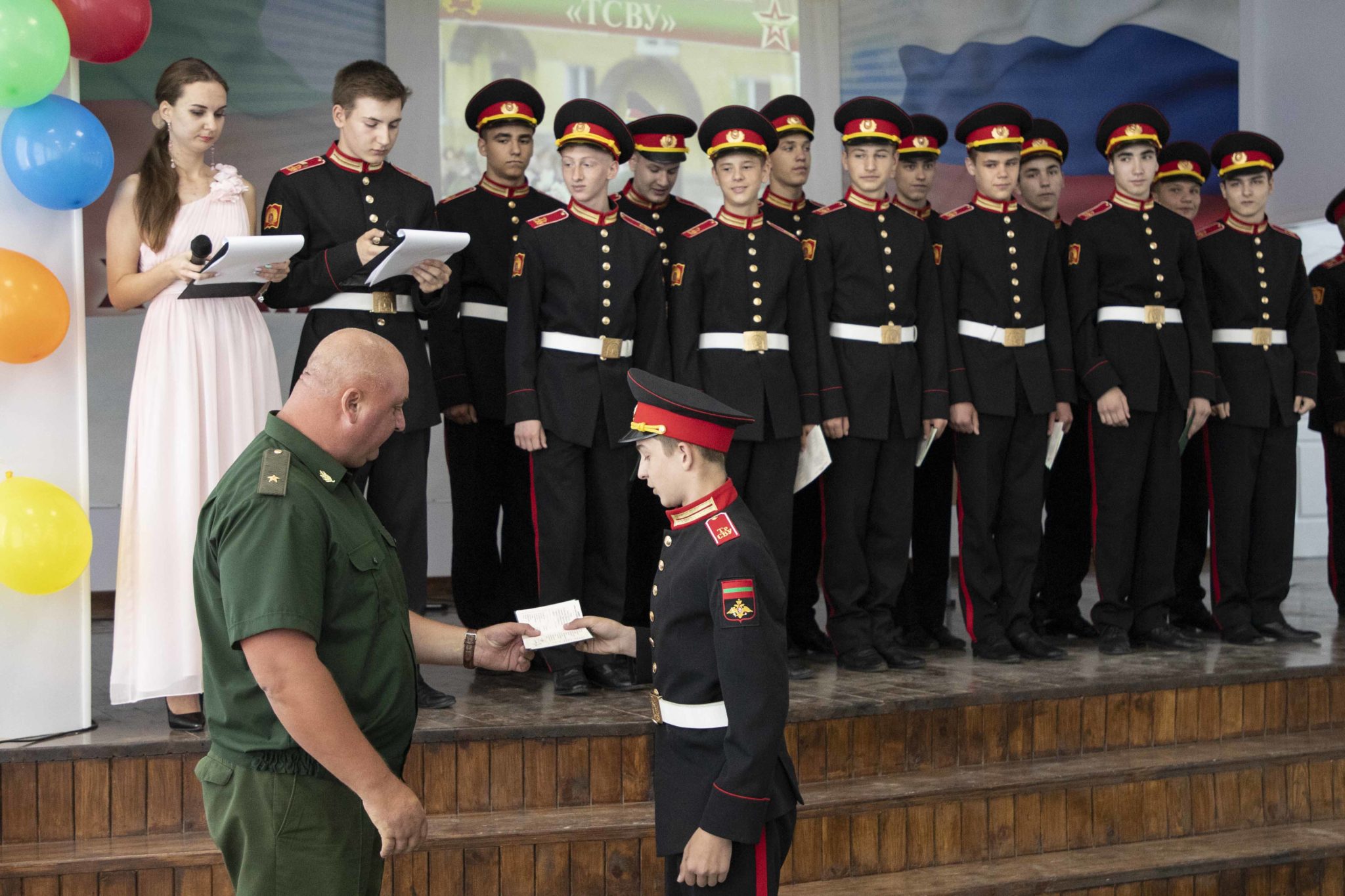 14 Июн.., 2019, 17:57Тирасполь, 14 июня. /Новости Приднестровья/. В Тираспольском Суворовском военном училище прошла торжественная церемония вручения аттестатов об окончании 9-го класса.
