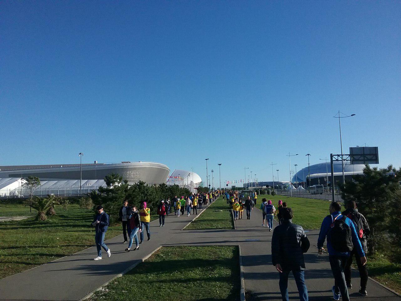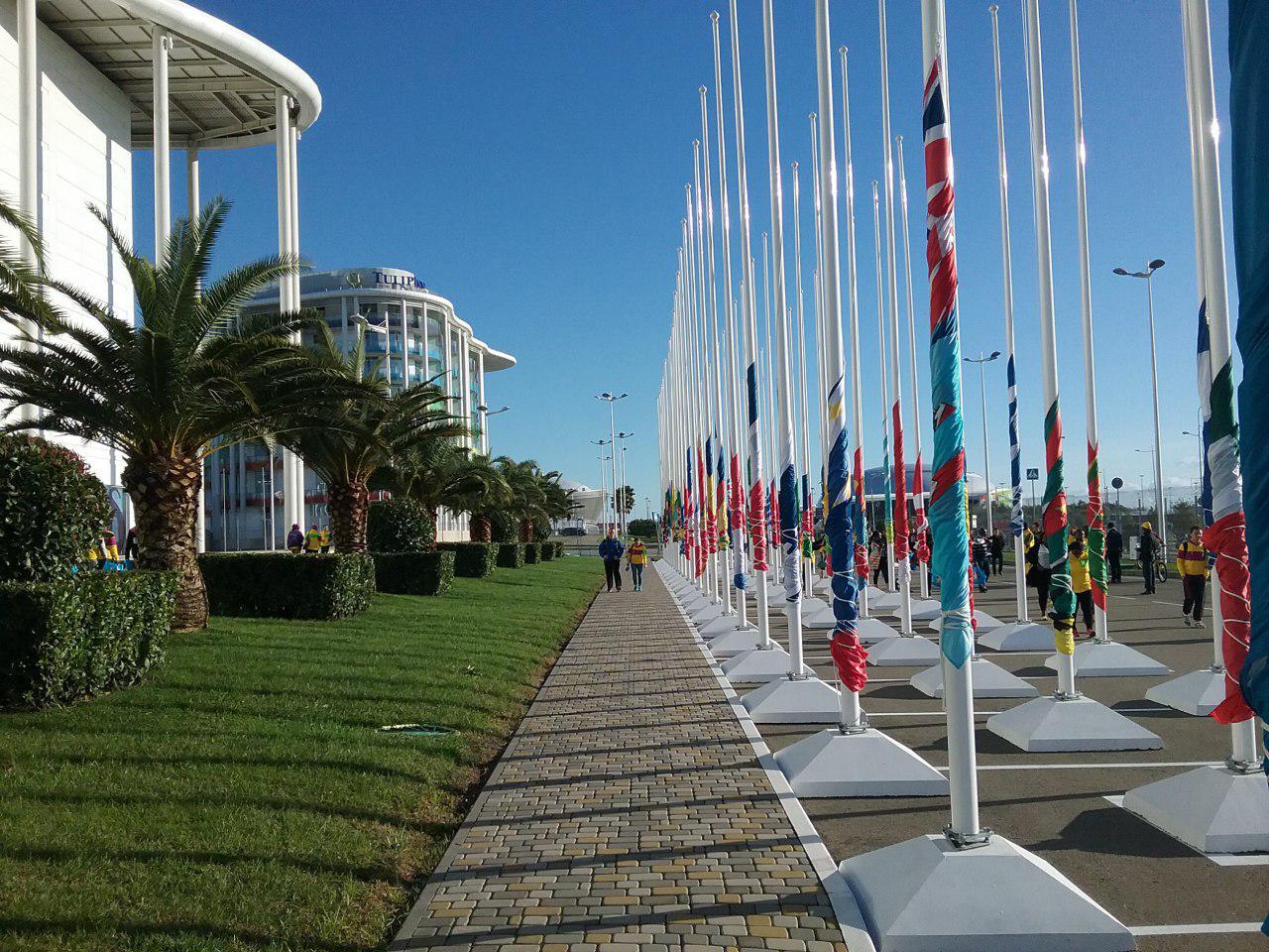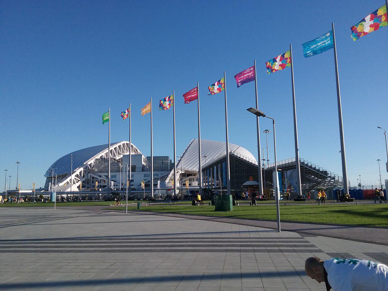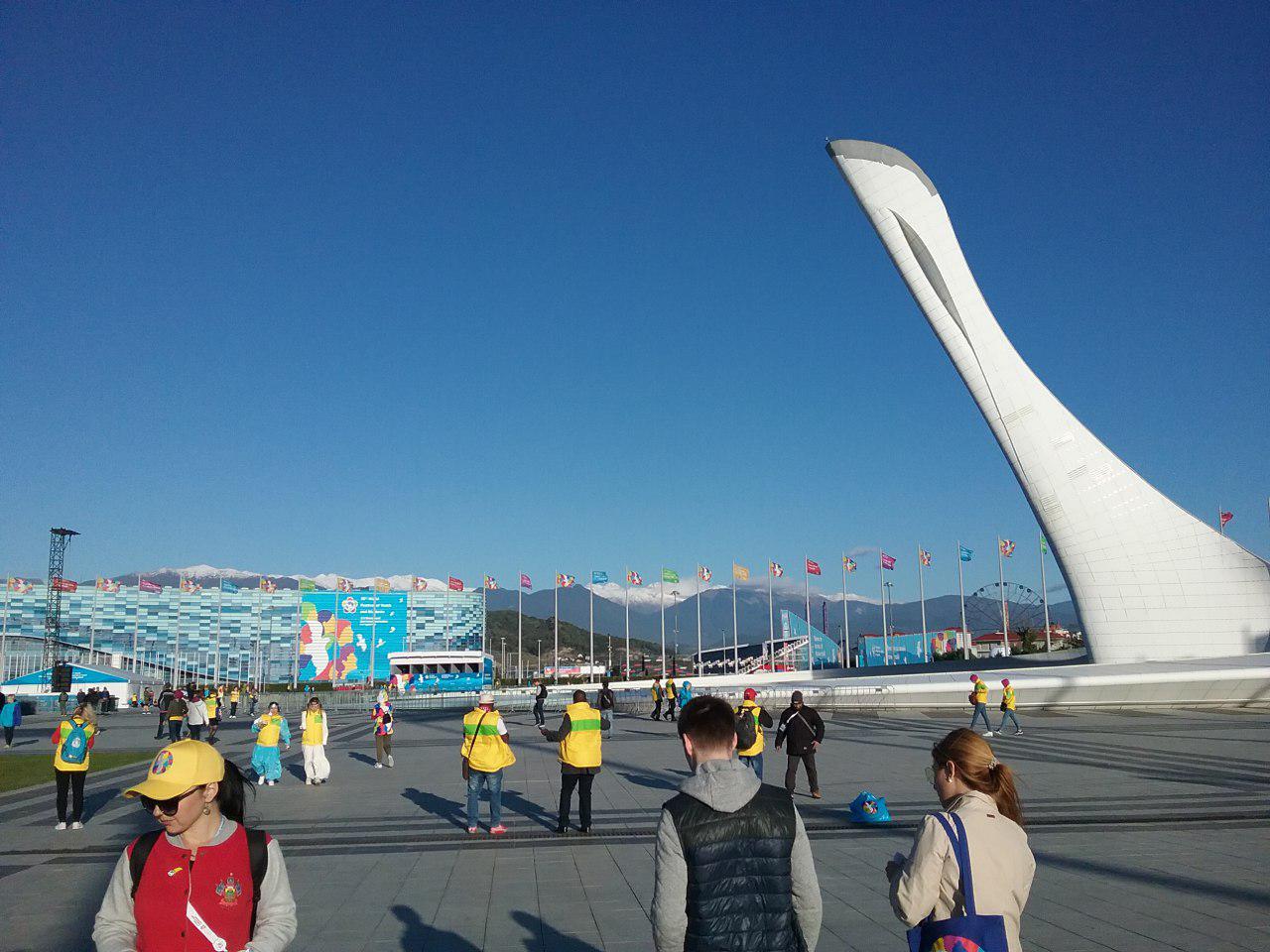 Несмотря на то, что в Сочи до сих пор не распогодилось, а ветер вчера дул так, что казалось, вот-вот «лопнут его щёки», Олимпийский парк полон приветливых улыбок всех народов мира. Участники фестиваля, которых набралось гораздо больше, чем ожидали организаторы, создают невероятную концентрацию пассионарности, иногда кажется, что находишься в миниатюрной демо-версии планеты Земля.