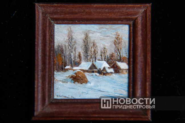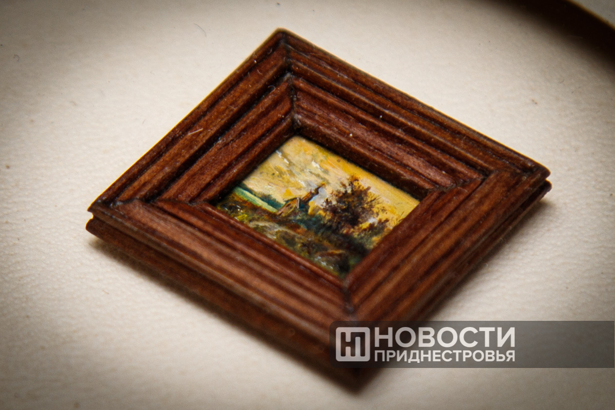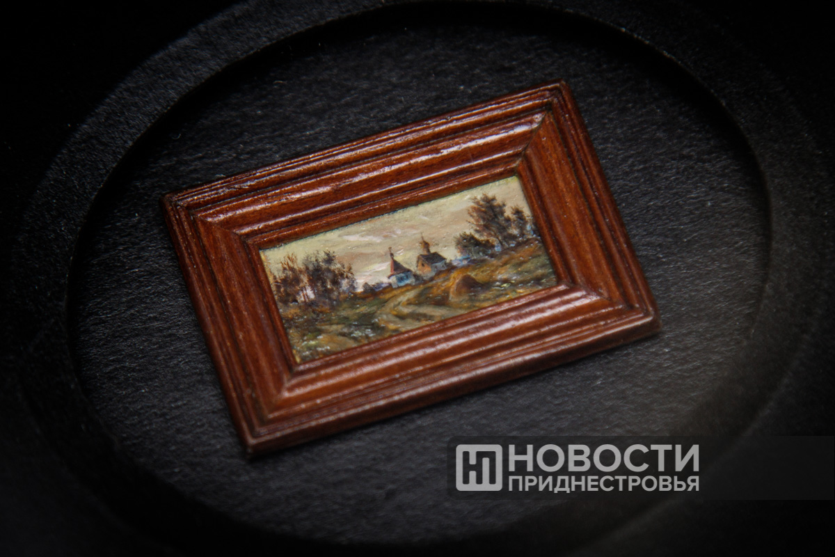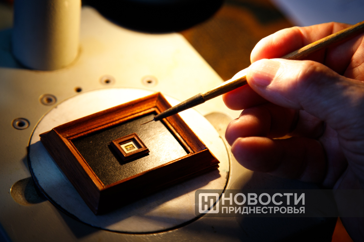 В истории известны миниатюристы, которые делали рисунки на конском волосе или рисовых зернах. Но там другая техника нанесения изображения, объясняет Николай Петрович. А так чтобы писать картины на сверхмалой поверхности маслом, да еще и пейзажи, таких мастеров приднестровский художник больше не знает. Николай Дмитриенко единственный в мире художник такого масштаба.
