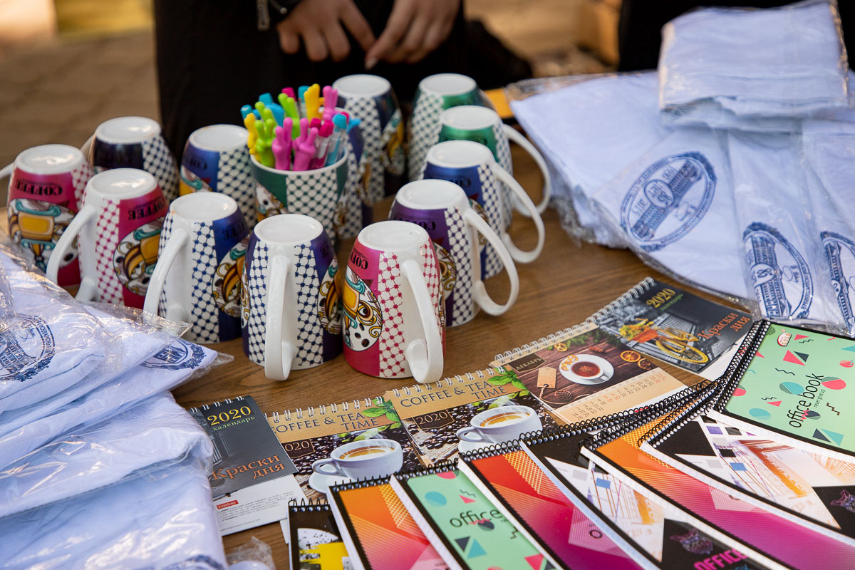 Так, например, профком студентов подготовил зачётные книжки гостя. Все, кто их получил, должны были отметиться на площадке каждого факультета. После этого они возвращались к профкому, где уже разыгрывали призы. На память можно было получить майку с эмблемой ПГУ, кружки, календари, блокноты и ручки - всё, что необходимо студенту.