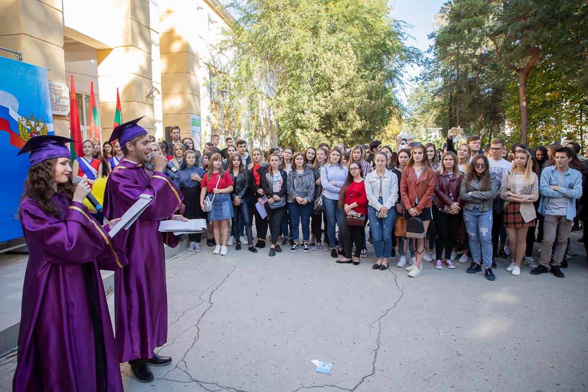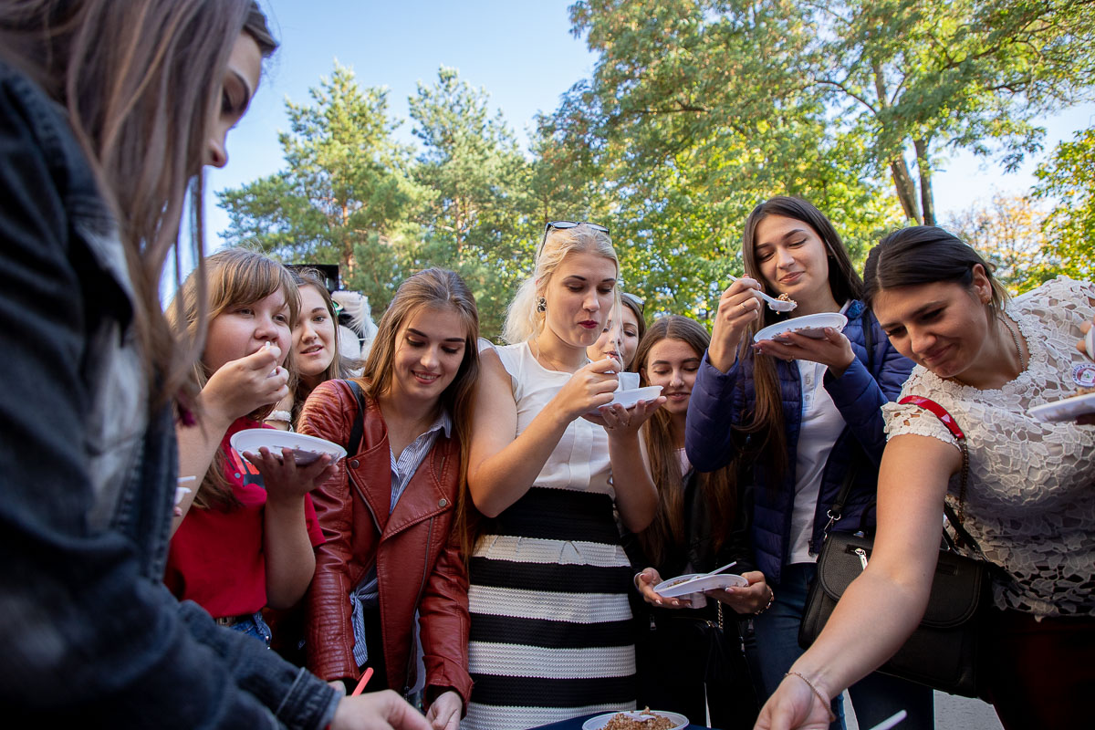 Один из ключевых моментов праздника – посвящение в студенты. По традиции старосты первого курса очищали головы от дурных мыслей, ели гречневую кашу и давали клятву студента. Обещали не прогуливать пары и учиться только на отлично.