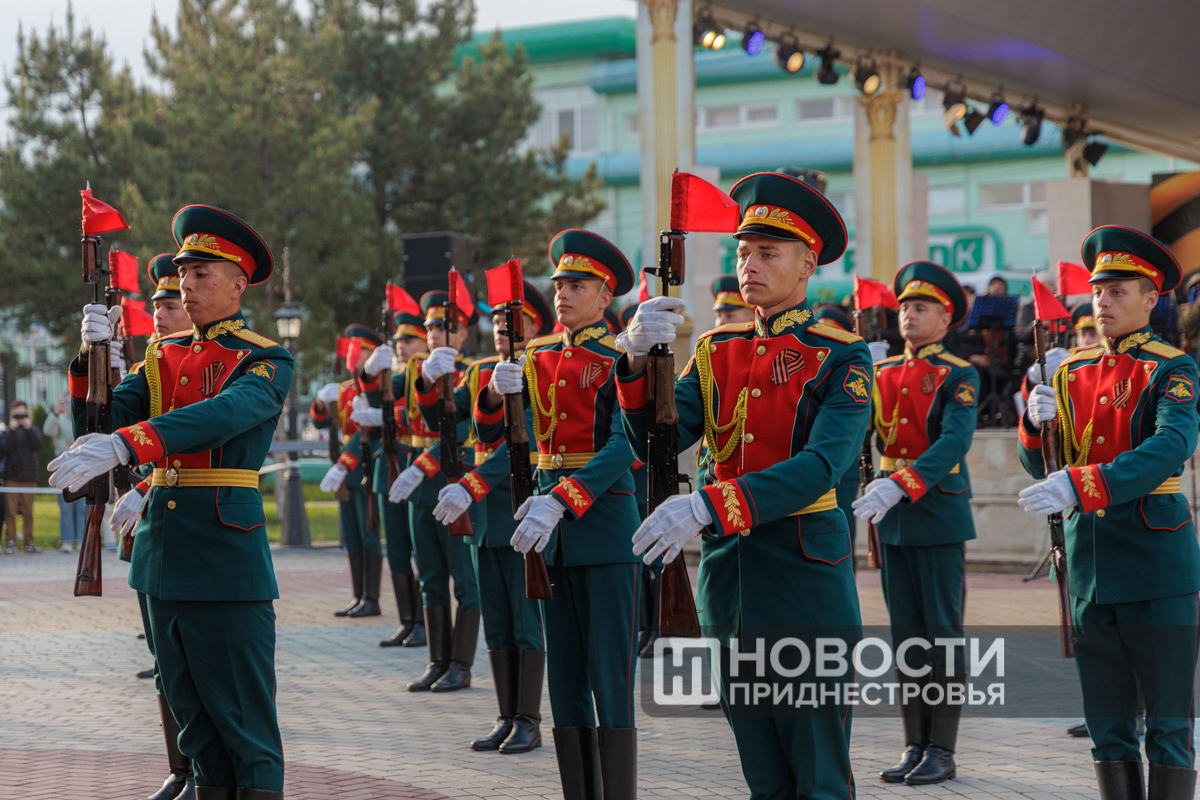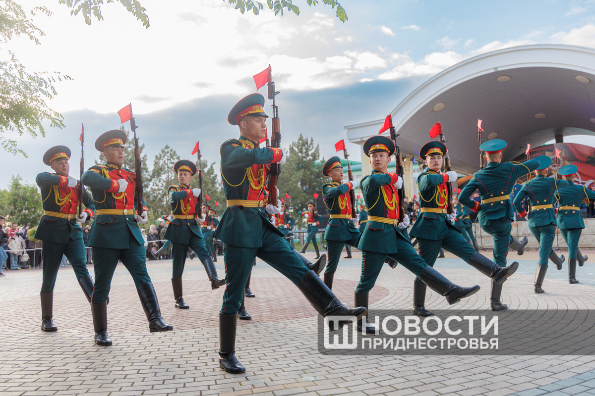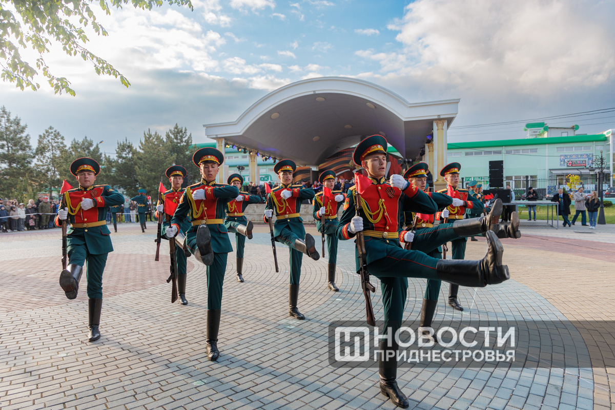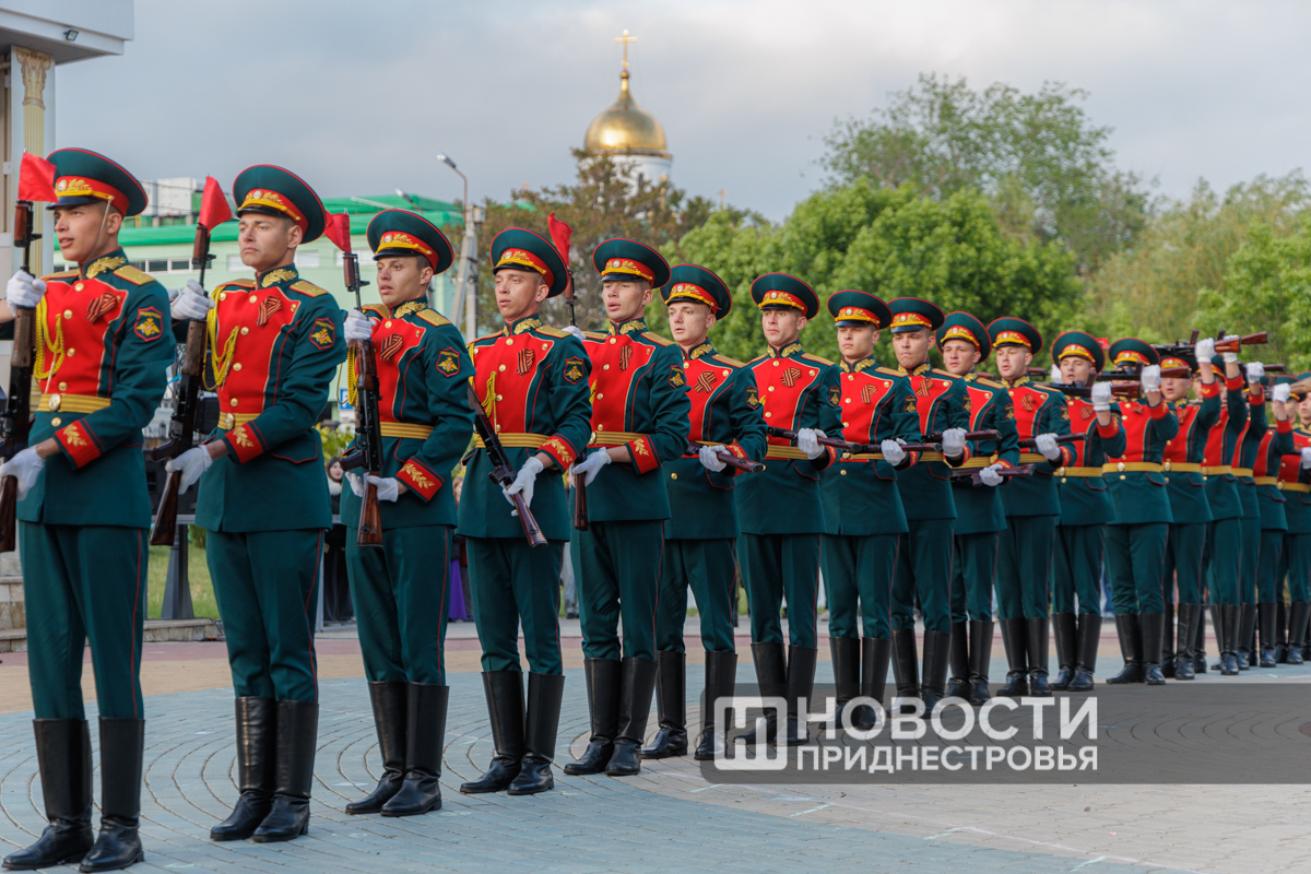 Вечером тираспольчан и гостей столицы своим мастерством владения элементами специальной строевой подготовки удивляли военнослужащие роты почетного караула. Ко Дню Победы они подготовили новую программу плац-парада, сообщает пресс-служба Министерства обороны ПМР.