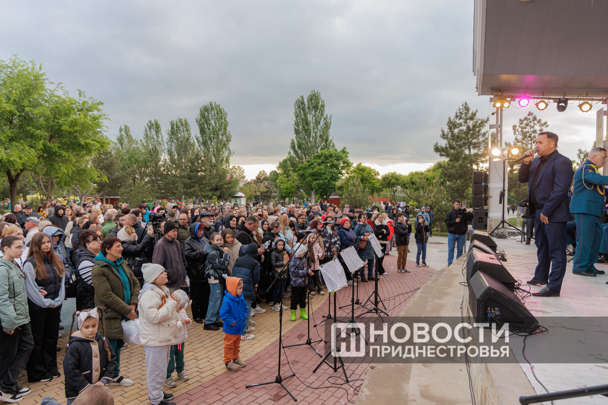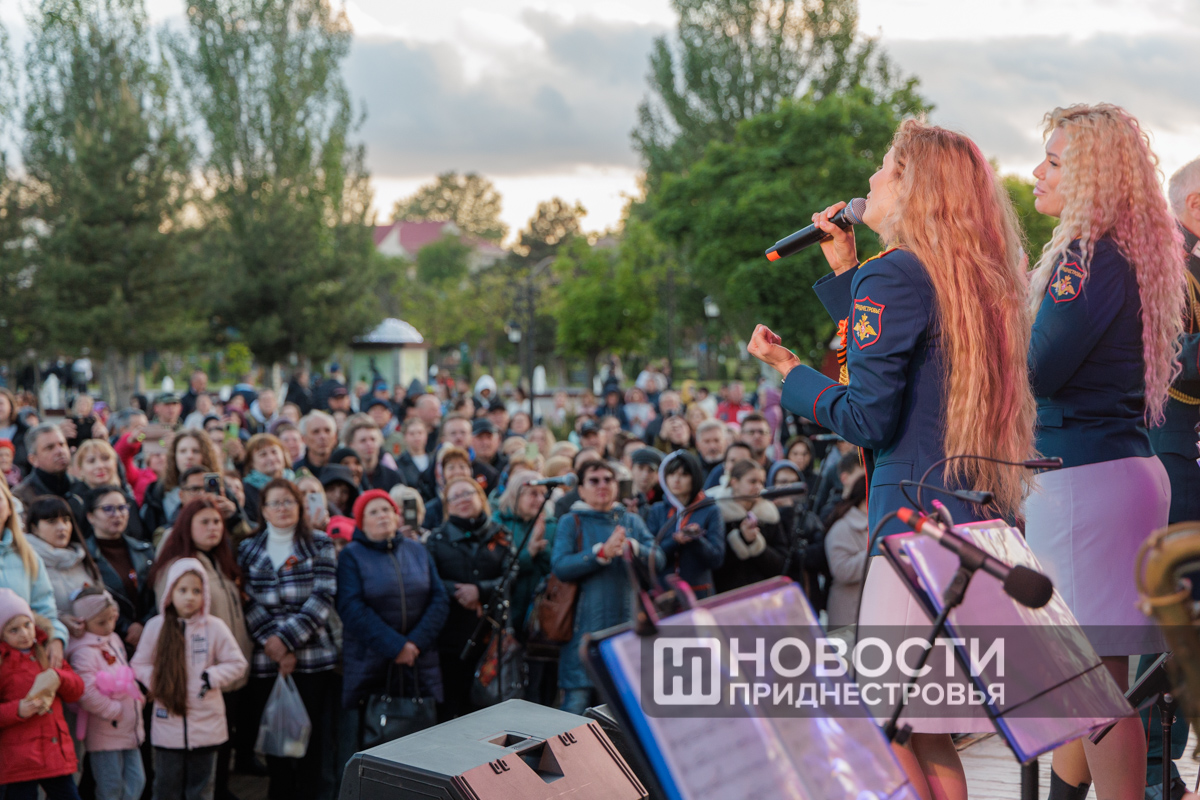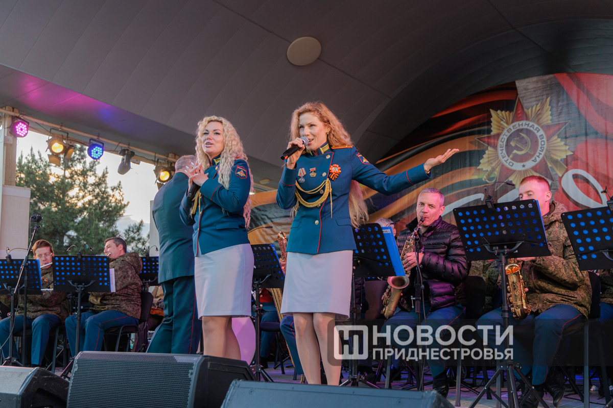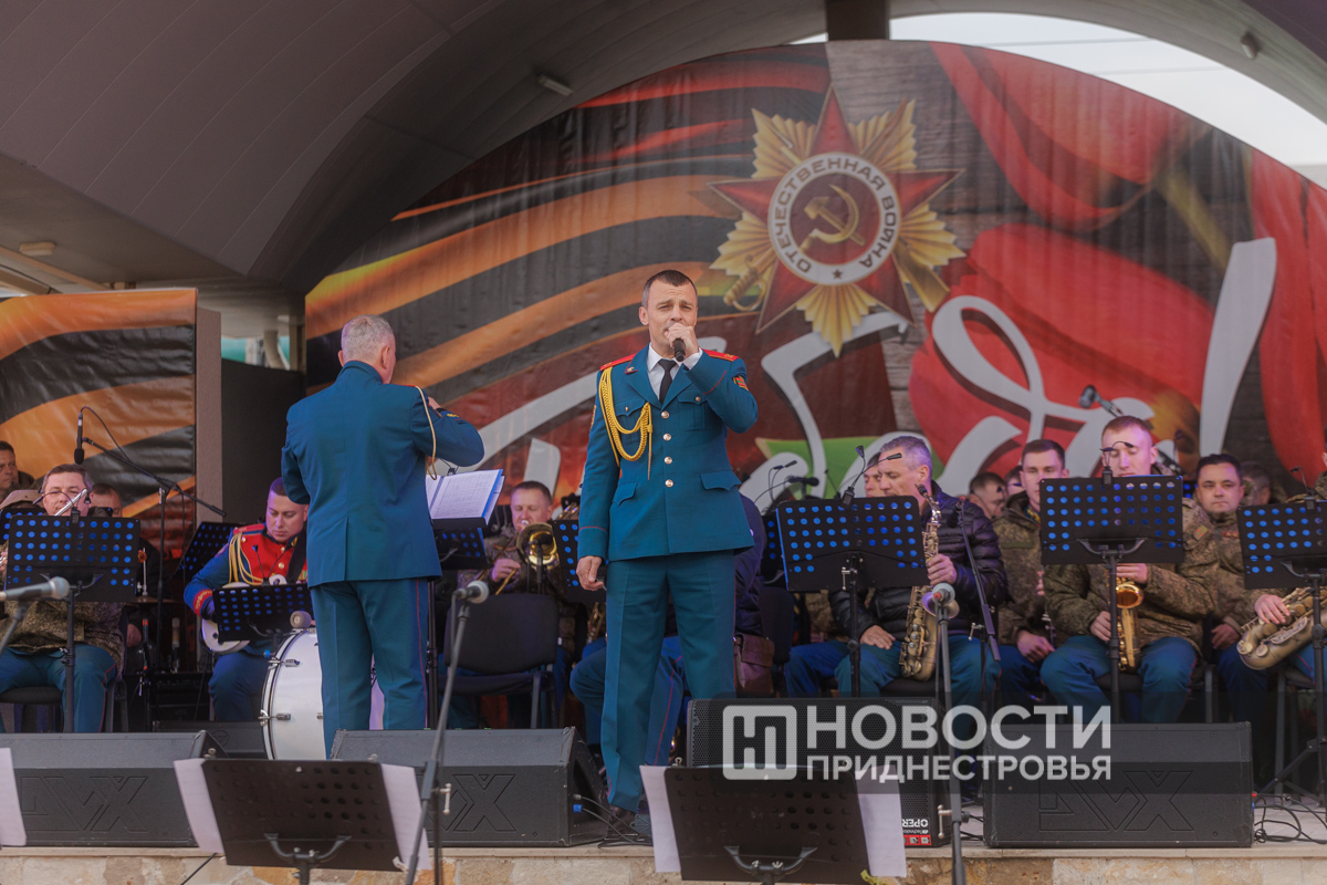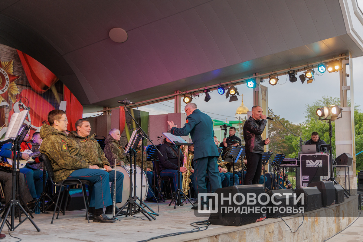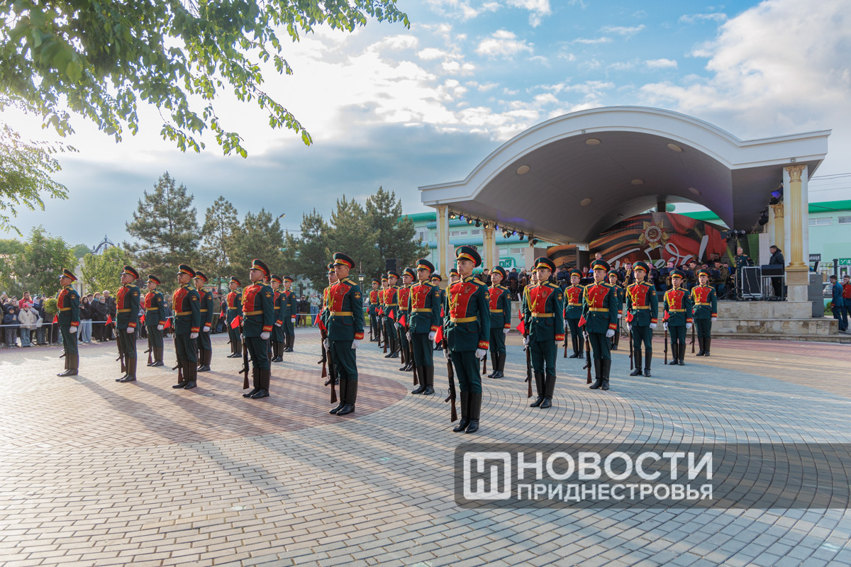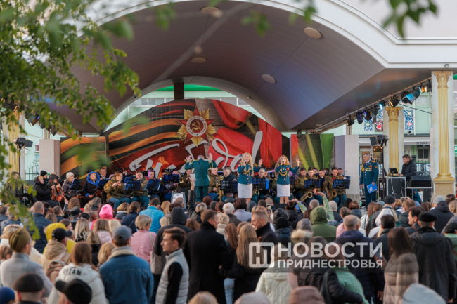 Тирасполь, 10 мая. /Новости Приднестровья/. Накануне вечернюю программу 80-летия Великой Победы украсили праздничный концерт оркестра главного штаба Вооруженных сил, выступление роты почетного караула и салют.