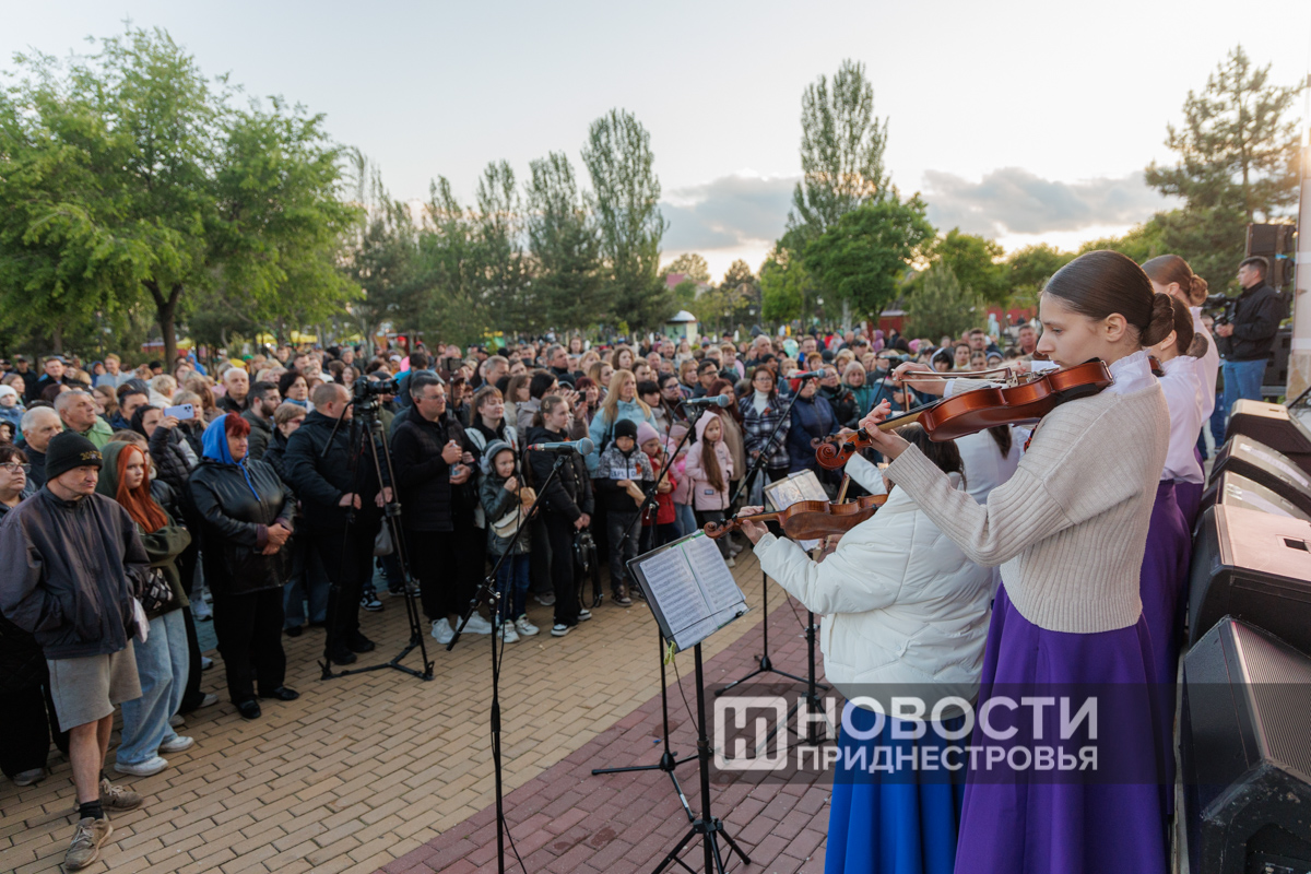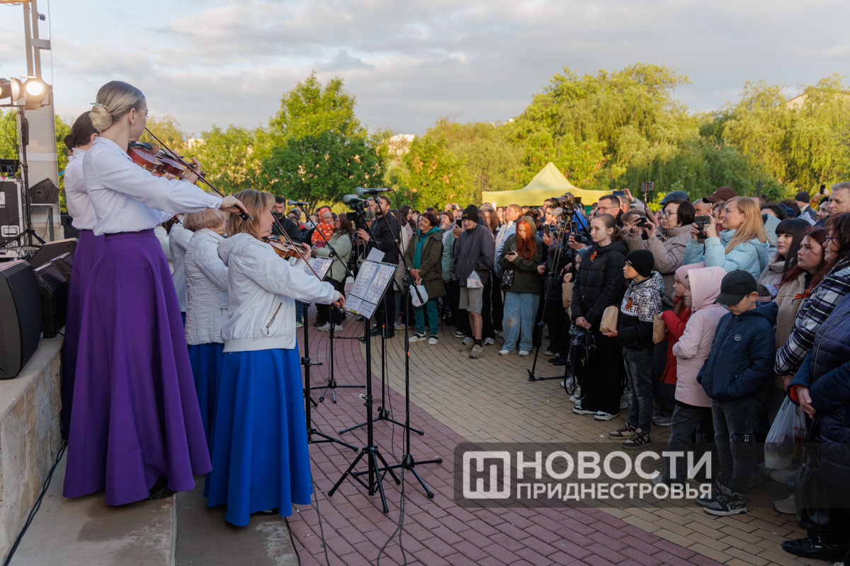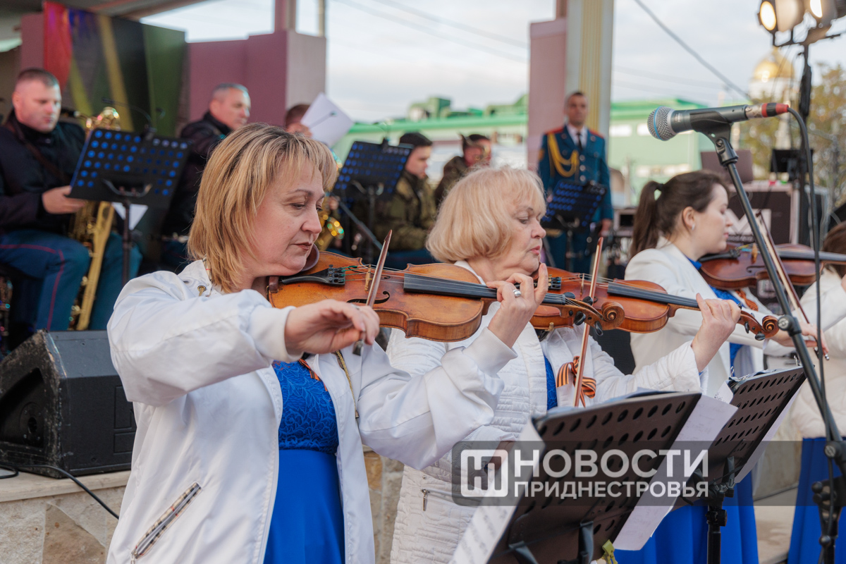 Специально приглашенные гости – ансамбль скрипачей рыбницкого Дворца культуры – исполнили композицию из саундтрека фильма «Ликвидация». Звучала и легендарная песня из «Семнадцати мгновений весны». Ее проникновенно исполнил юный артист из Бендер - учащийся 8-го класса Андрей Кирман.