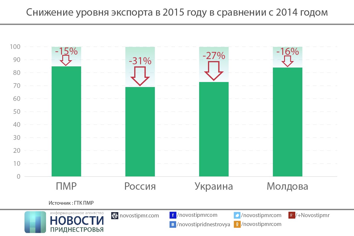 Сравнительный анализ свидетельствует, что в Приднестровье в 2015 году экспорт сократился на 14,6%, в Молдове – на 16%, в Украине – на 27%, в России – на 31%.