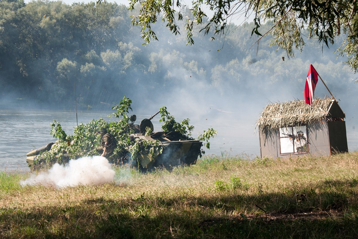 В задачи экипажа БРДМ-2 входило своевременное обнаружение противника и разведка местности. Были получены данные о диверсионной группе из 15 человек, которая укрылась в лесополосе. Принято решение провести разведку боем с высадкой на берегу. Мотострелковый взвод форсирует водную преграду. В бой введены БТРы-70.