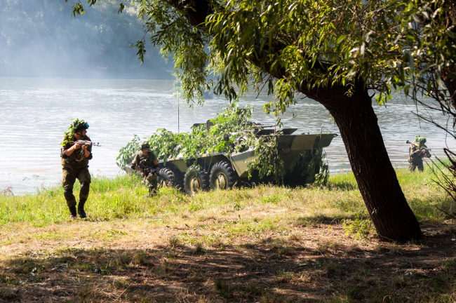«Сегодня проходило занятие по преодолению водных преград на реке Днестр. Так как течение на реке довольно-таки большое, были некоторые трудности с выходом техники в заданный квадрат. Но так как мы на регулярной основе проводим занятия, и я уже служу не первый год, у нас все получилось и на довольно высоком уровне», — отметил водитель БТР-70 мотострелкового взвода ОГРВ Игорь Стельмах.