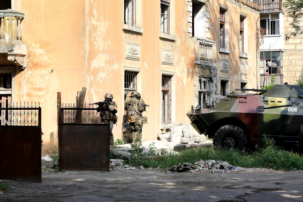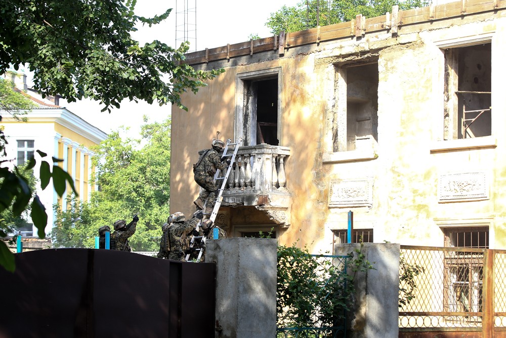По легенде учений, террористы засели в жилом доме в центральной части Тирасполя. Задачей спецназа было их обезвредить с минимальными потерями личного состава и максимально эффективно подойти к выполнению задачи.