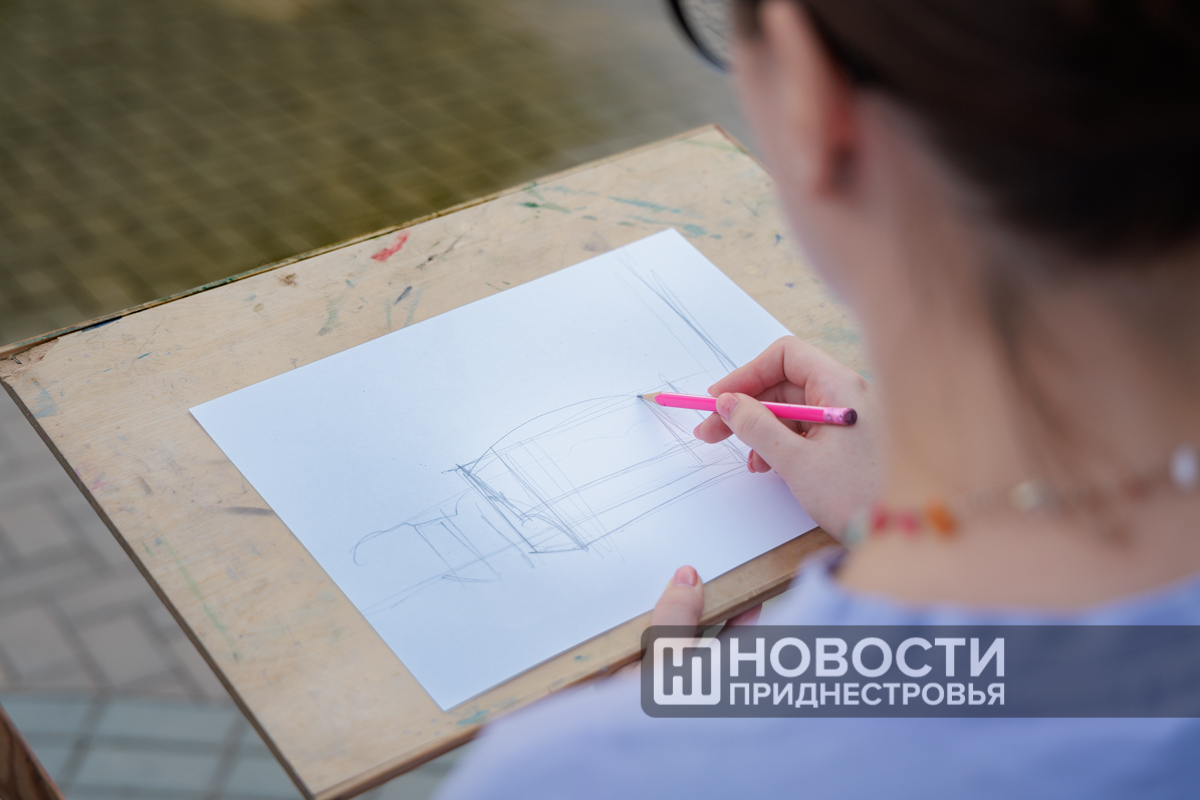 Одна из участниц работала над перспективой. Говорит, что это задание ей легко даётся, ведь она в художественной школе обучается уже четвёртый год. Многие работы участвовали в конкурсах. Некоторые занимали призовые места. В будущем девушке пригодится художественный навык, ведь она планирует поступать на архитектуру в Приднестровский госуниверситет.