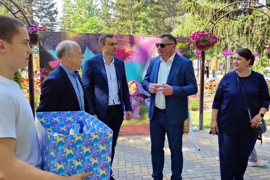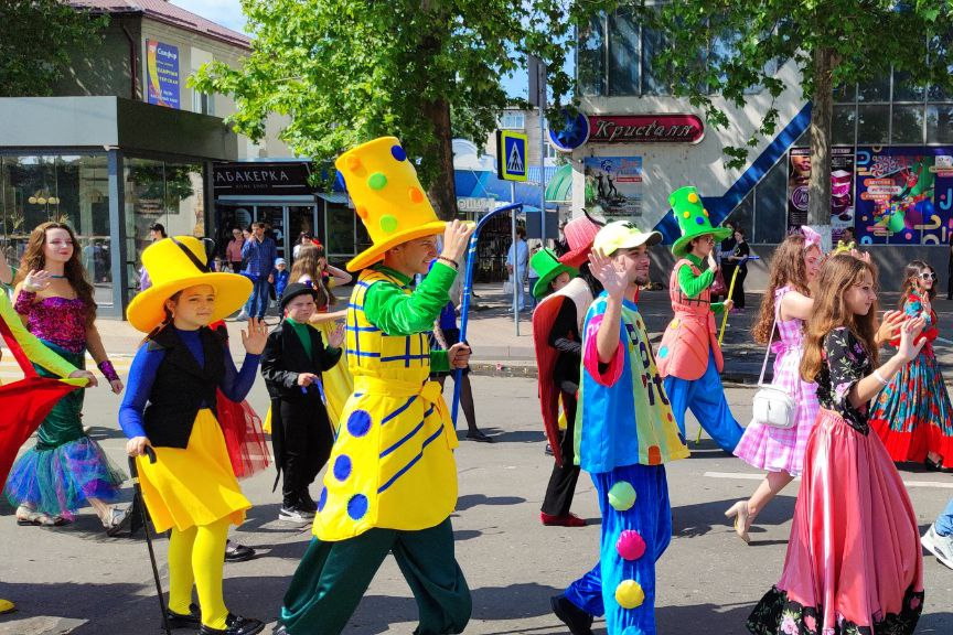 Затем празднование переместилось в городской парк, где была организована спортивно-игровая программа «Здравствуй, лето!». Для детей также проводятся мастер-классы, конкурсы, работают выставки и праздничные фотозоны.