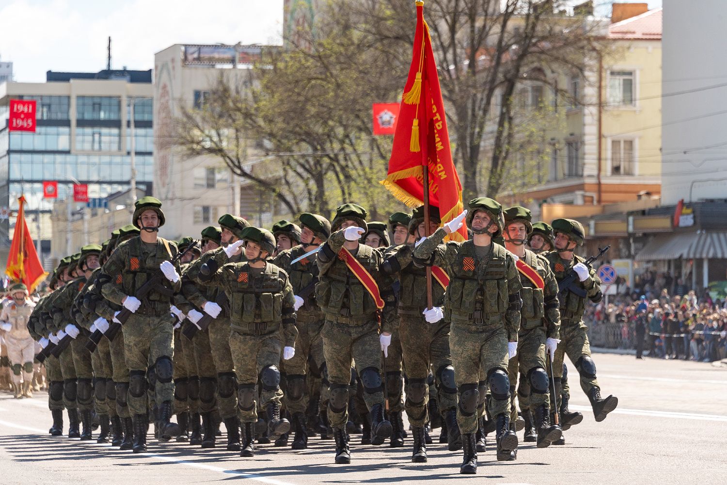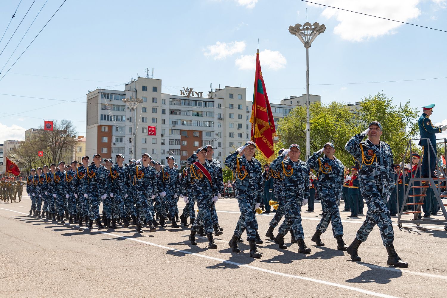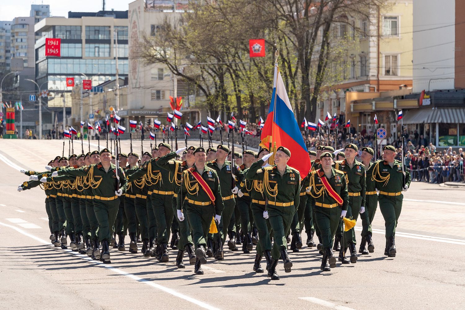 Перед почётными гостями парада – ветеранами Великой Отечественной войны и тружениками тыла – торжественным маршем прошествовали военнослужащие Вооружённых сил ПМР, Пограничного управления МГБ, МВД и подразделений Оперативной группы российских войск в Приднестровье, парадный расчет курсантов Военного института Министерства обороны в форме времен Великой Отечественной войны, а также будущие защитники Отечества – учащиеся Республиканского кадетского корпуса и Тираспольского Суворовского военного училища.