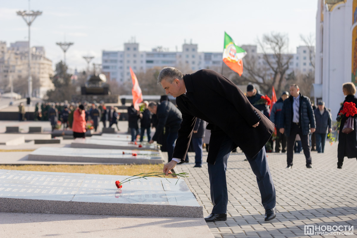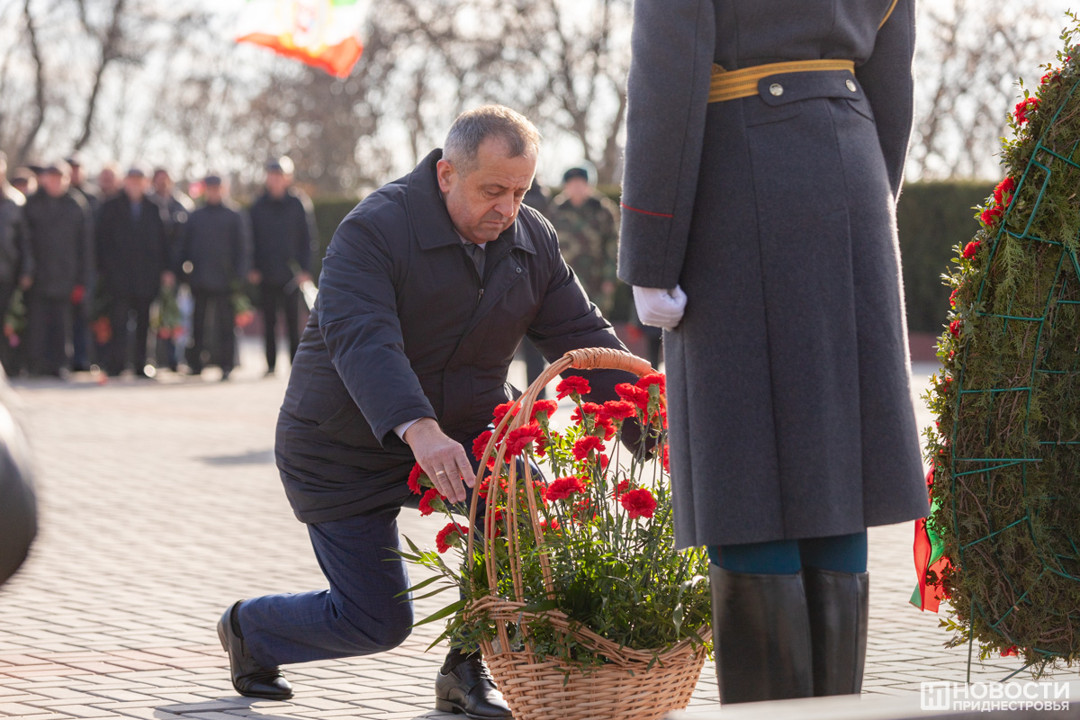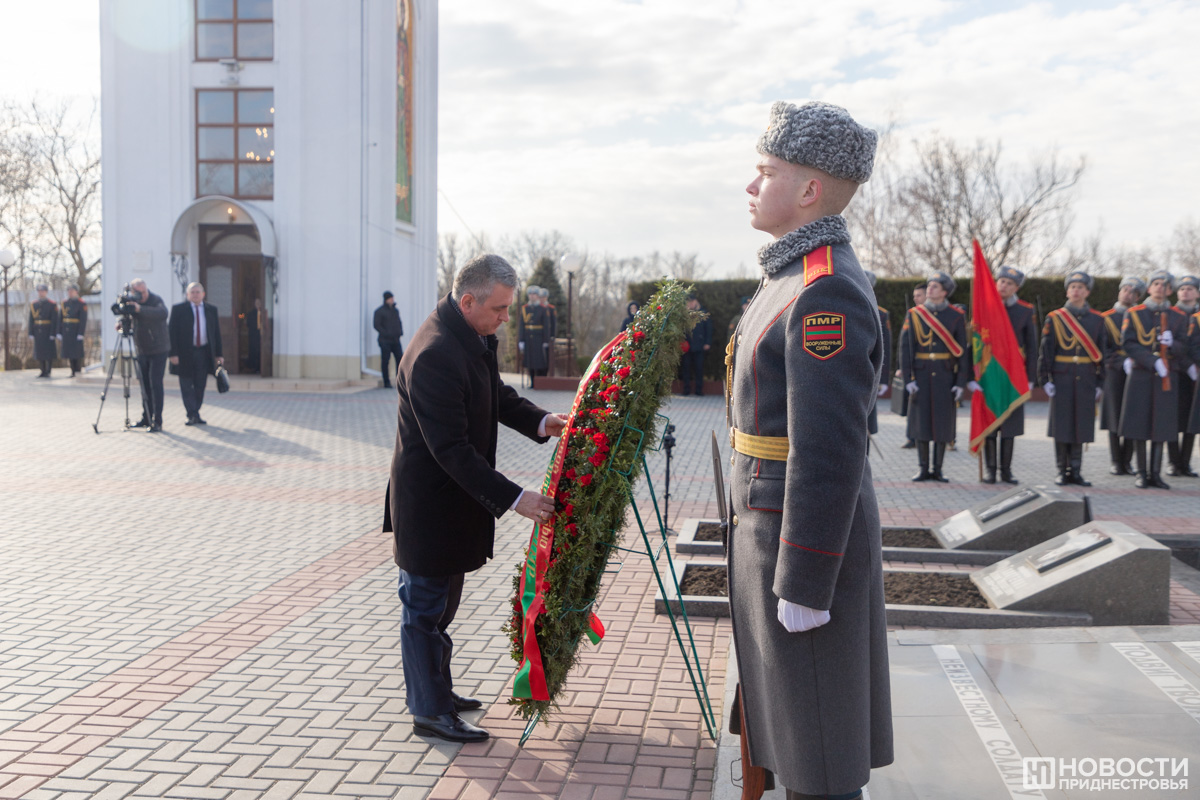 В Тирасполе этим утром на Мемориале Славы память погибших защитников почтили первые лица государства. Президент ПМР Вадим Красносельский подчеркнул значимость сохранения мира и памяти о тех, кто его отстаивал, а также поздравил всех, кто сегодня стоит на страже мира и безопасности.