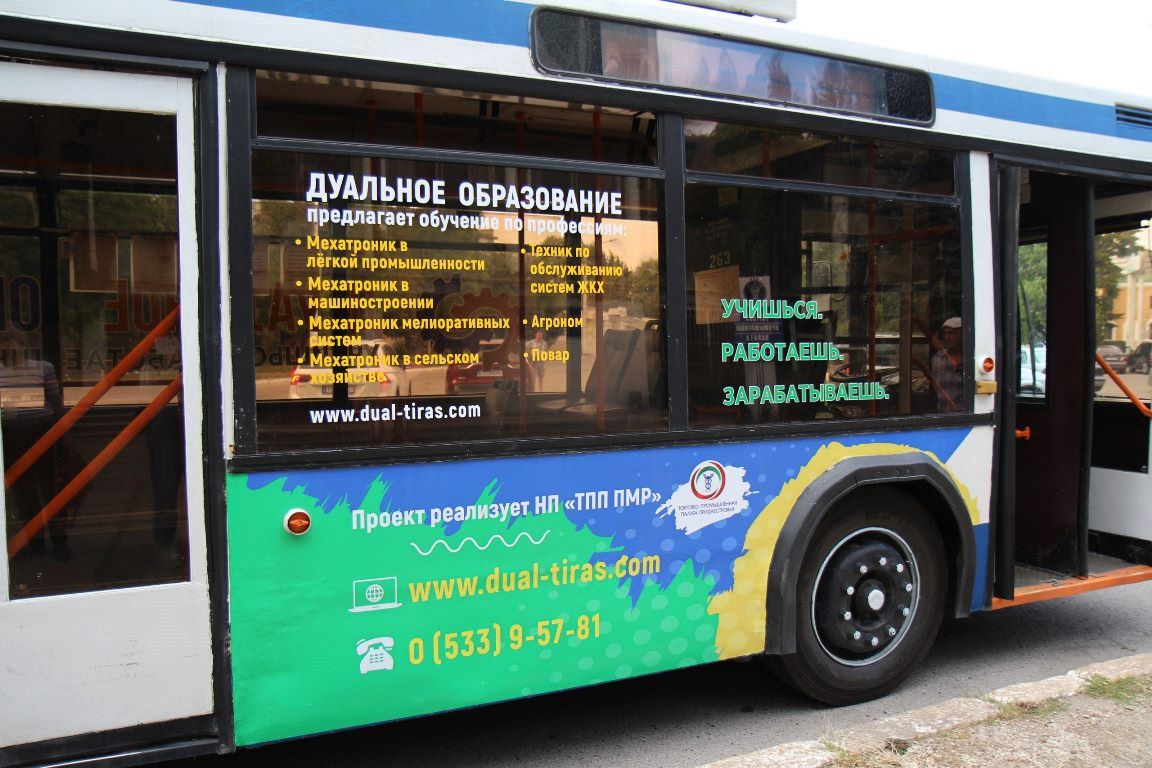 Тирасполь, 11 сентября. /Новости Приднестровья/. По Тирасполю и Бендерам курсирует троллейбус с рекламой дуального образования. Напомним, это проект, предусматривающий акцент на практических занятиях во время обучения той или иной специальности.