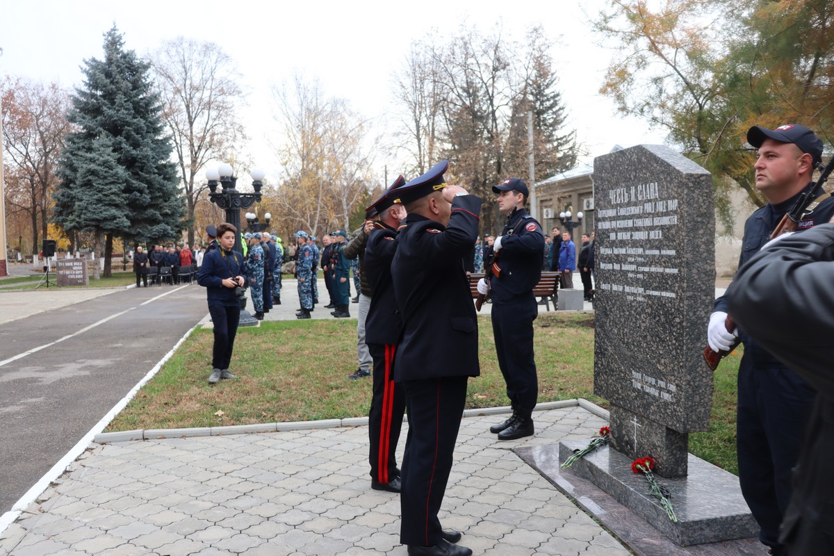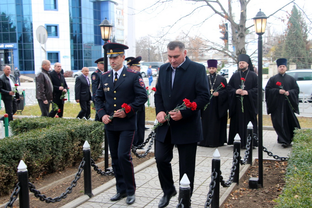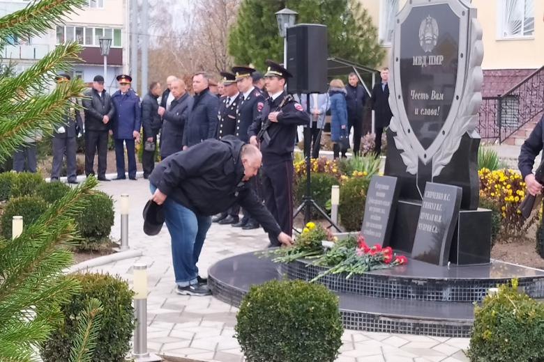 В Рыбнице торжественное мероприятие сегодня началось с возложения цветов к памятному знаку сотрудникам милиции, погибшим при исполнении служебного долга. Память о них почтили минутой молчания.