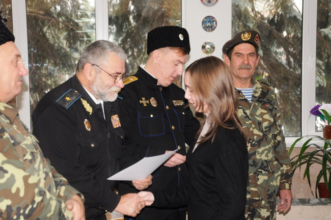 Атаман Черноморского казачьего войска Игорь Небейголова поблагодарил ребят за их творчество и труд.