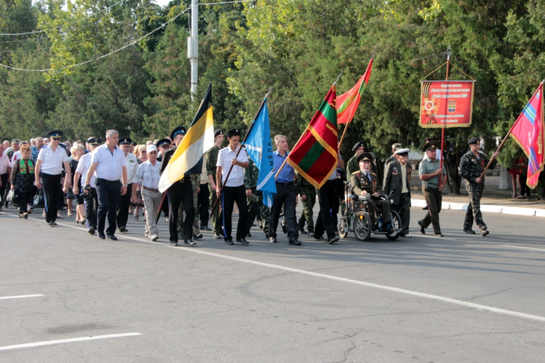 По площади Победы прошла колонна защитников Приднестровья с флагом республики, а также «Бессмертный полк» с фотографиями рыбничан, погибших при защите Приднестровья. В торжественной обстановке состоялась церемония поднятия флагов. Гостей праздника поприветствовал глава района Виктор Тягай.