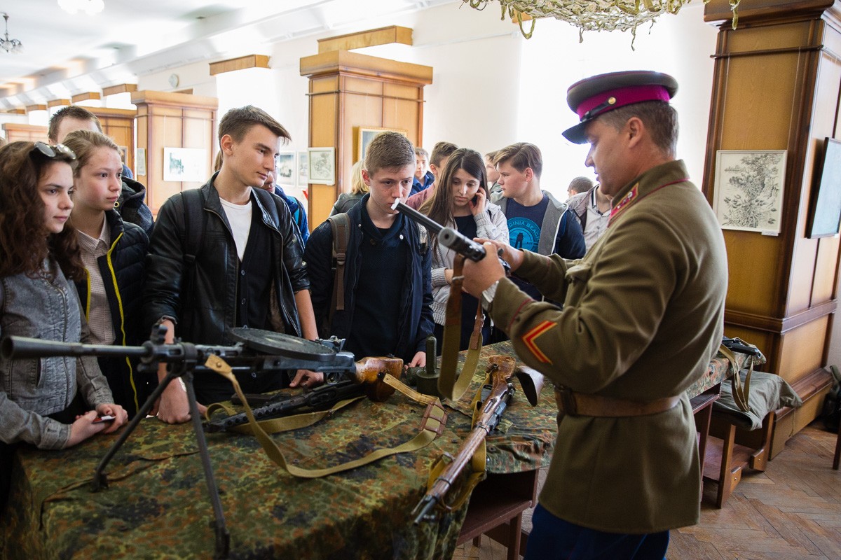 Возможность «пощупать» штрихи времени школьники используют по полной — мальчики не отходят от оружия, девочки с интересом разглядывают предметы быта.