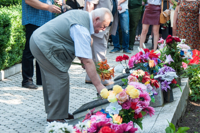 Первый президент Приднестровья Игорь Смирнов у памятника, воздвигнутого на месте трагедии, от имени приднестровцев выразил соболезнования родственникам погибших и низко им поклонился.