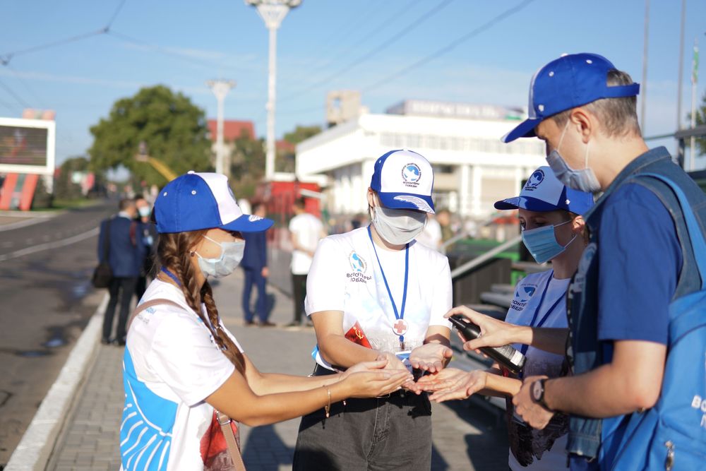 До 2 сентября волонтёры прошли специальное обучение. Основная функция добровольцев заключалась во встрече гостей, в сопровождении зрителей, раздаче воды. В работе корпуса также были задействованы волонтёры-медики и фотоволонтёры.