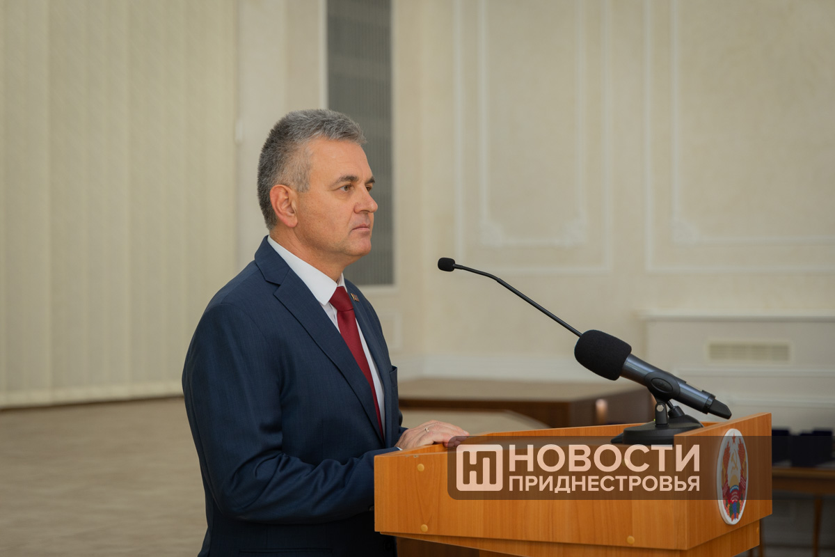 «35-й год живёт, развивается в непростых условиях наше государство. На нашу долю выпали поистине нелёгкие времена. Это развал Советского Союза, это эпоха неразберихи и необходимость создания нашей государственности как защиты прав и свобод человека и гражданина. Мы прошли боевые действия, сейчас продолжаем противостоять политическим, экономическим, энергетическим блокадам. Но, несмотря на сложности, Приднестровье живёт и развивается. А это возможно только благодаря людям - приднестровскому народу», - сказал глава государства.