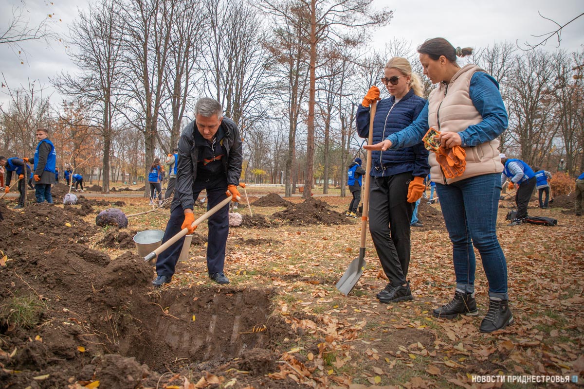 Активно высаживали деревья сегодня и волонтёры из Общеприднестровского народного форума. По словам Сергея Мельниченко, гуляя по парку раньше, он не замечал пустые участки, которые здесь есть. А теперь тут будут расти деревья.